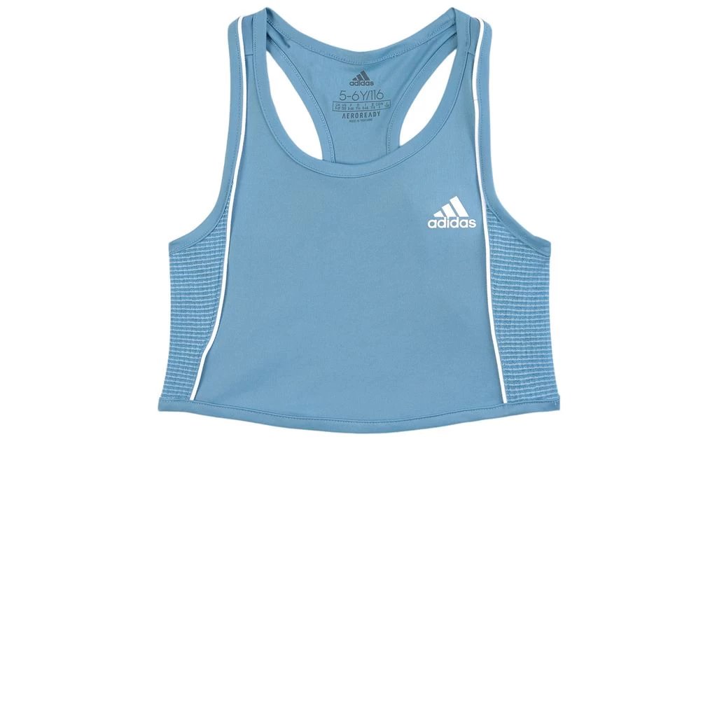 Blue Logo vest by adidas Performance. The top has a racerback design. It has mesh inserts on the sides.