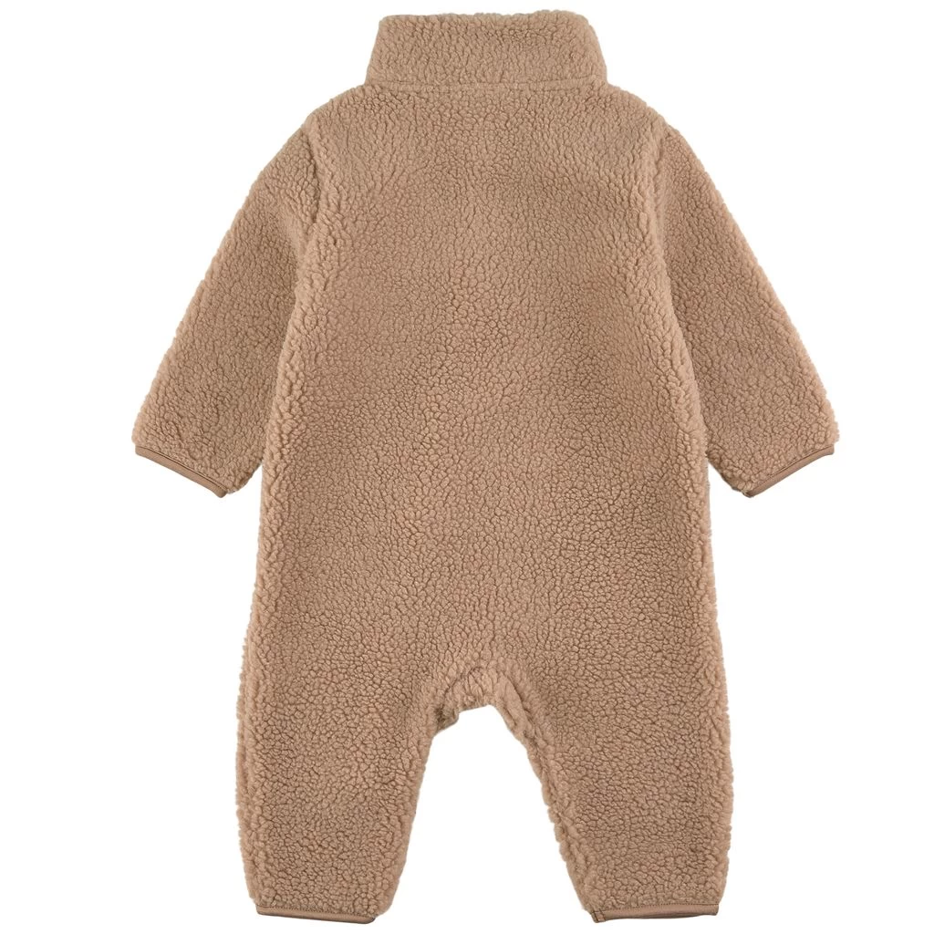 Keep warm with comfy fleece. Beige Austin fleece coverall by Kuling. The fleece coverall has a zip closure at the front.