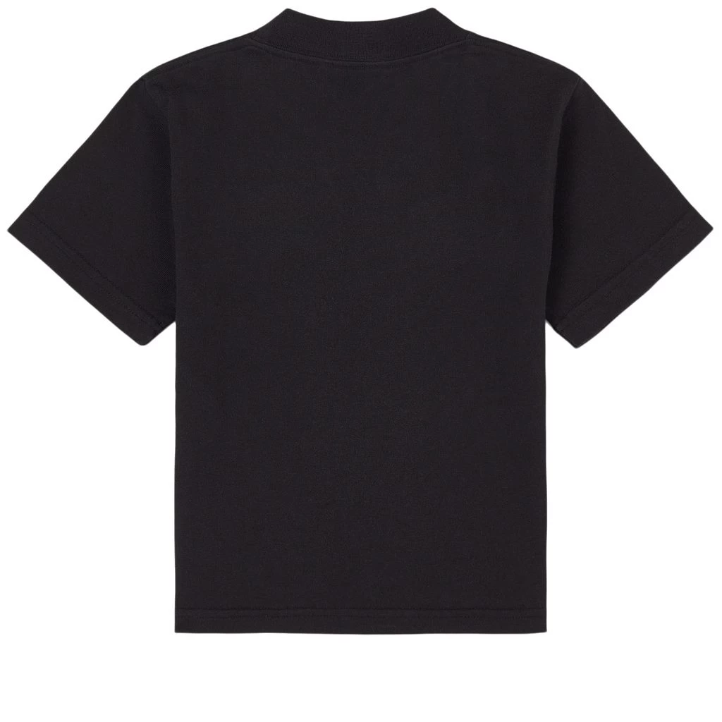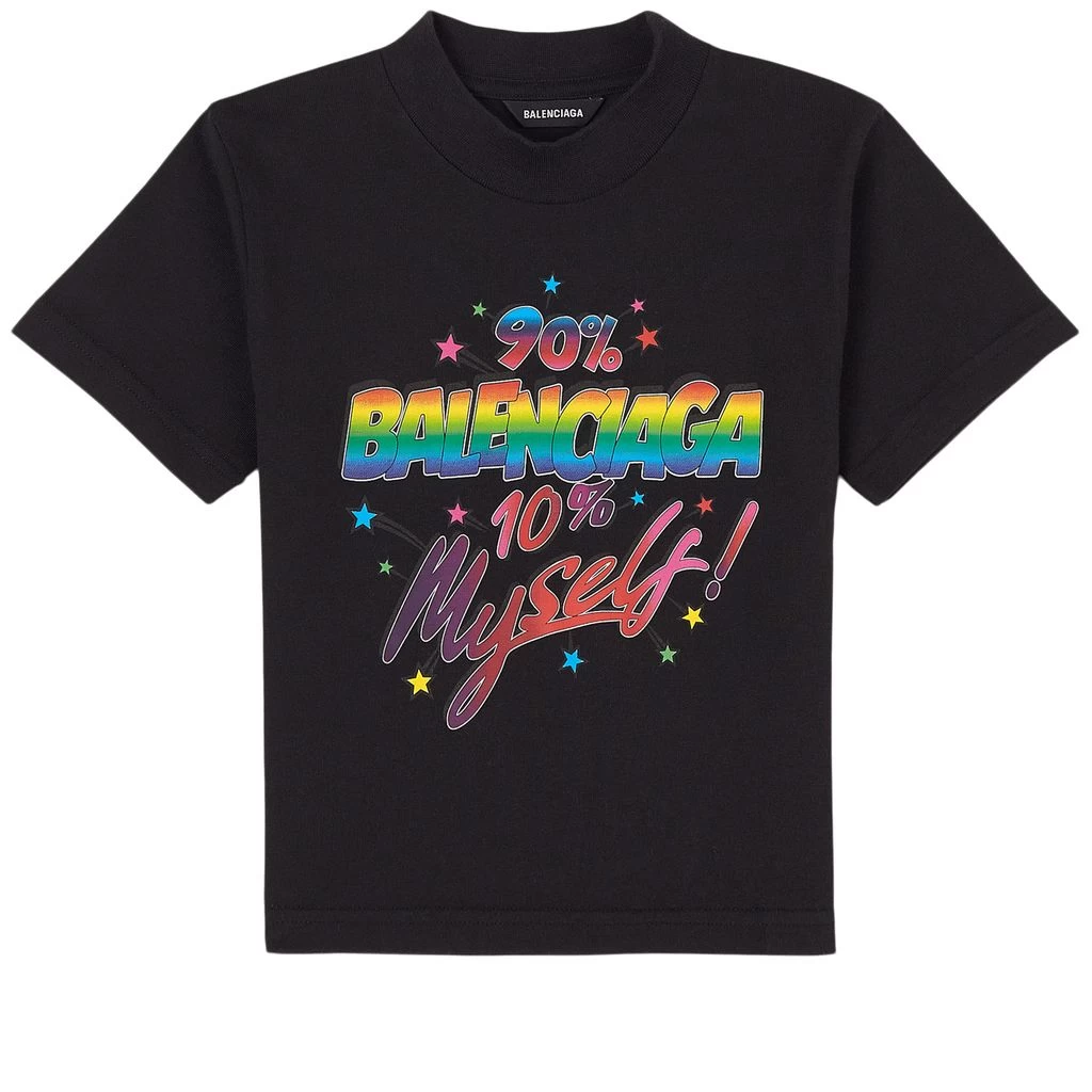 Stay trendy and stylish with a fun graphic tee. Black graphic t-shirt by Balenciaga. The graphic t-shirt has a regular fit. It has a ribbed crew-neck and a branded graphic on the front.