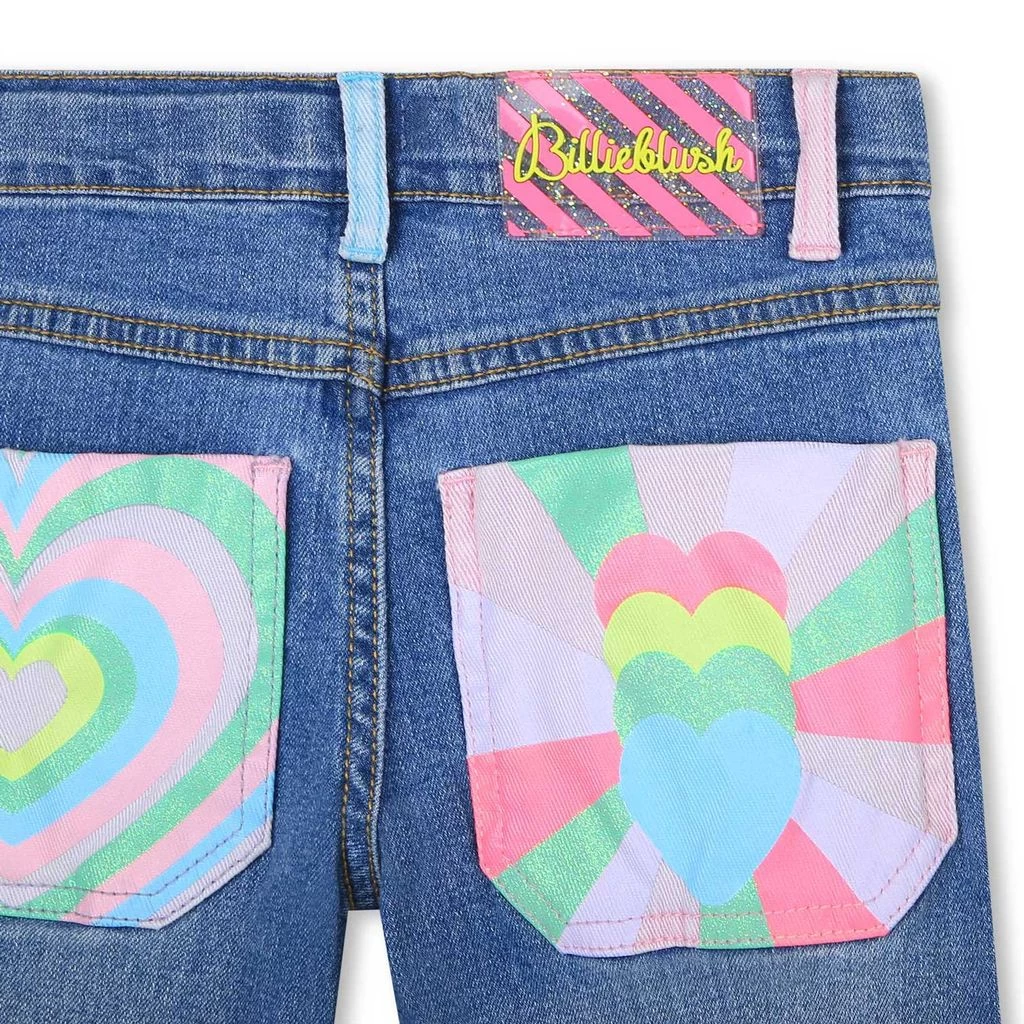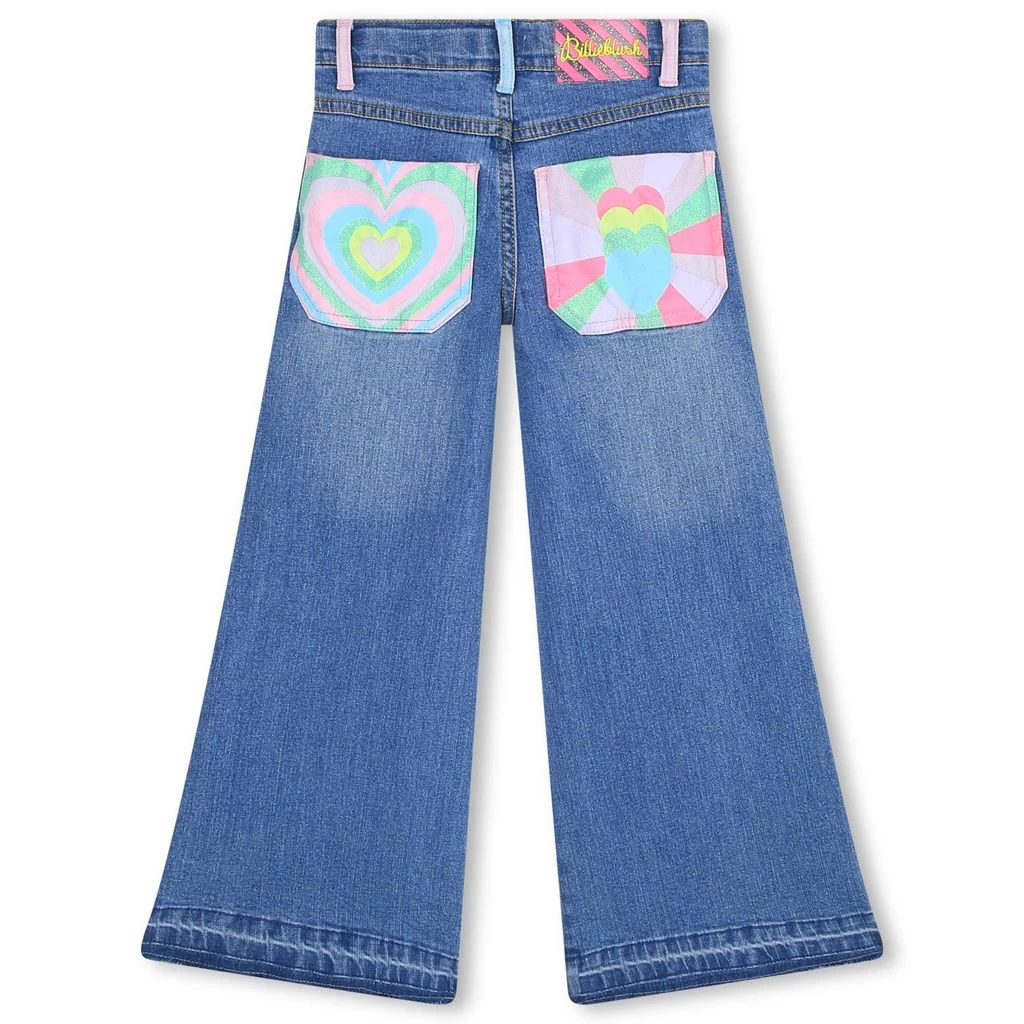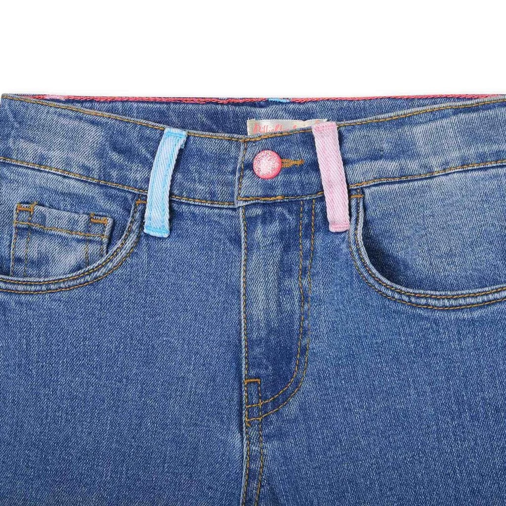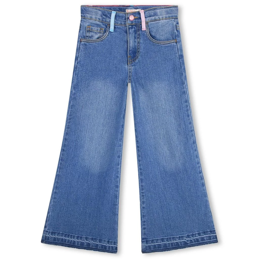 These jeans are fun, playful and just right. Blue jeans by Billieblush. The jeans have an adjustable button-elastic waist. They have a zip fly with button, a 5-pocket design and flared legs.