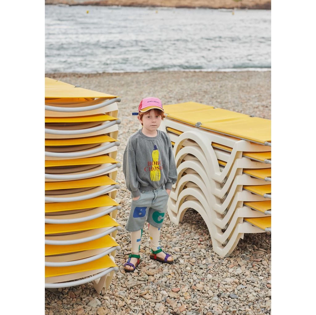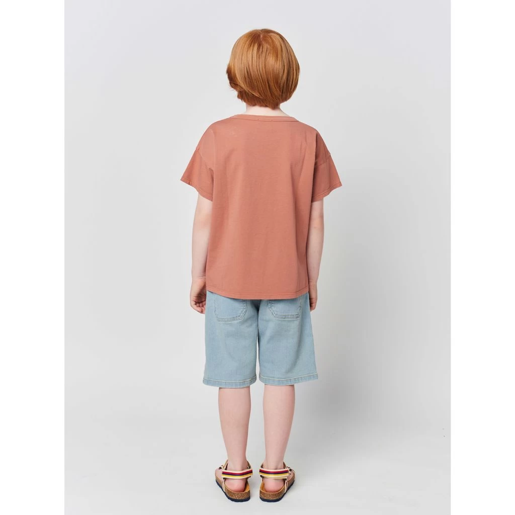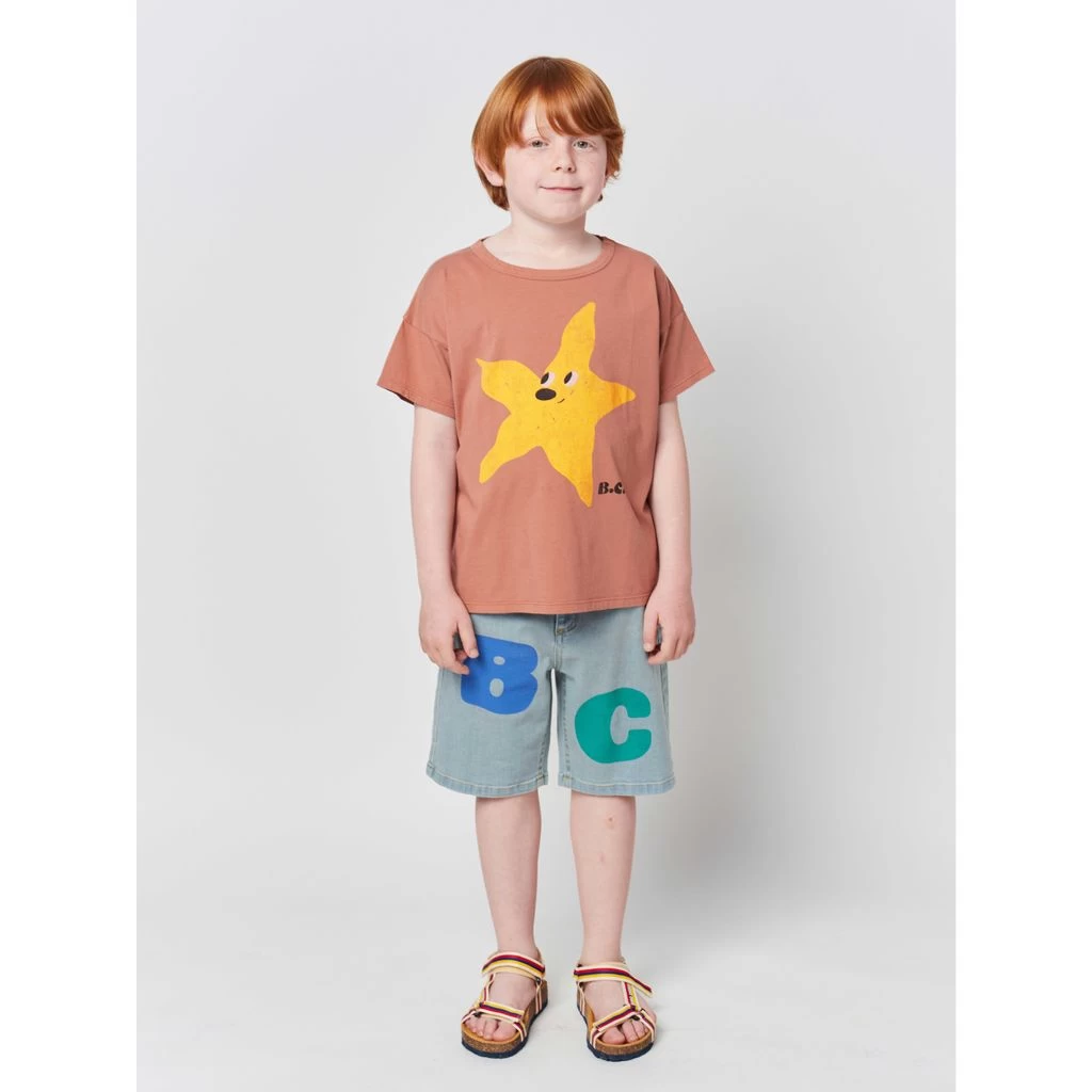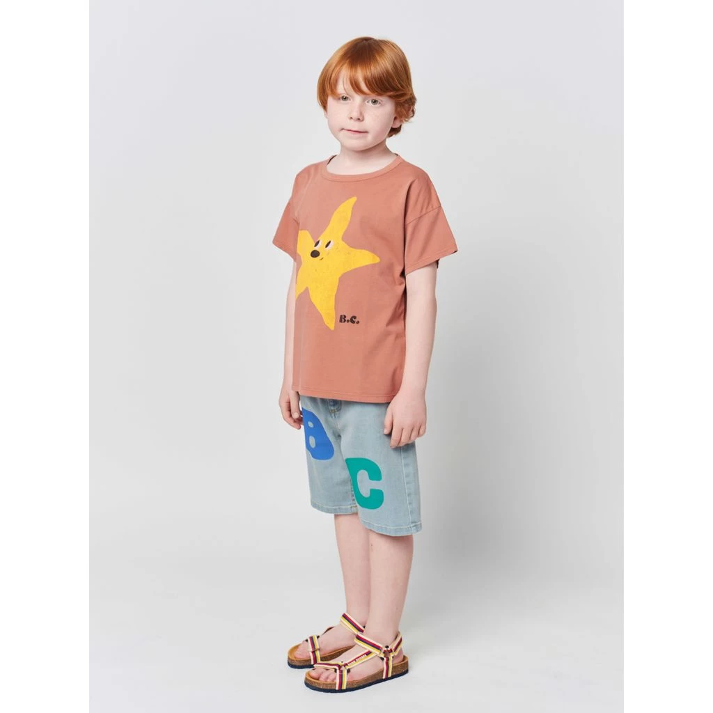 Perfect for those sunny days. Blue B.C denim shorts by Bobo Choses. The shorts have an adjustable button-elastic waist. They have a zip fly with snap button, two front pockets and two back pockets.