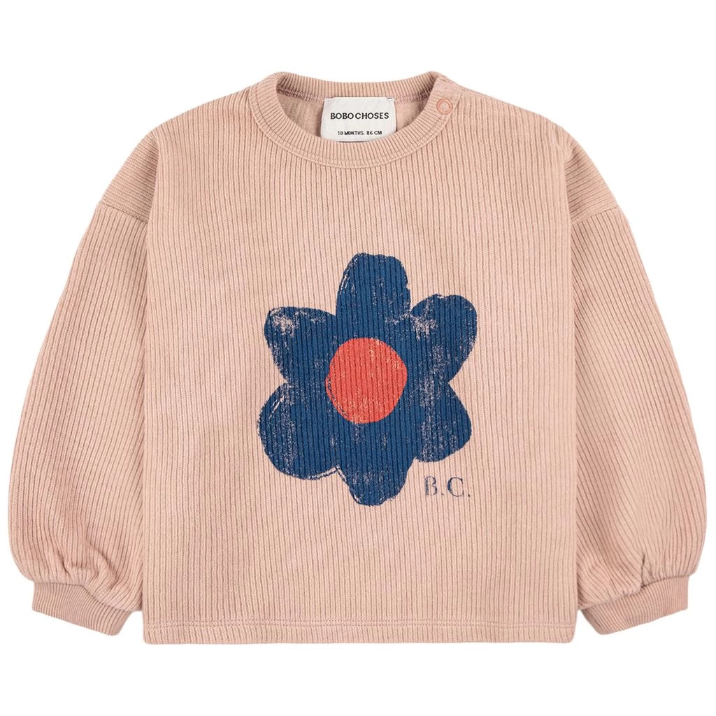 Let your baby explore and play in comfort. Pink Big Flower sweatshirt by Bobo Choses. The sweatshirt has a regular fit. It has snap buttons at the shoulder and ribbed cuffs.