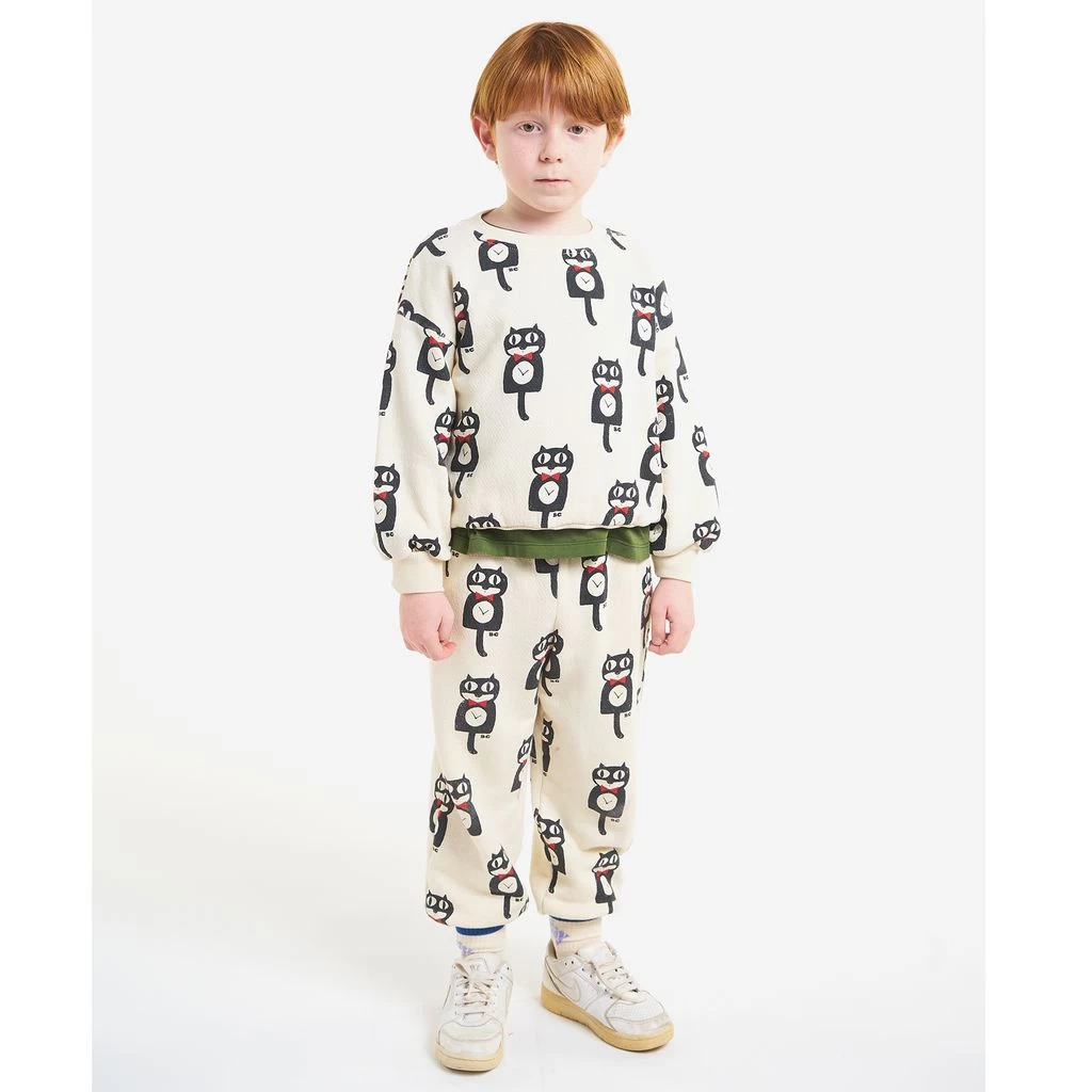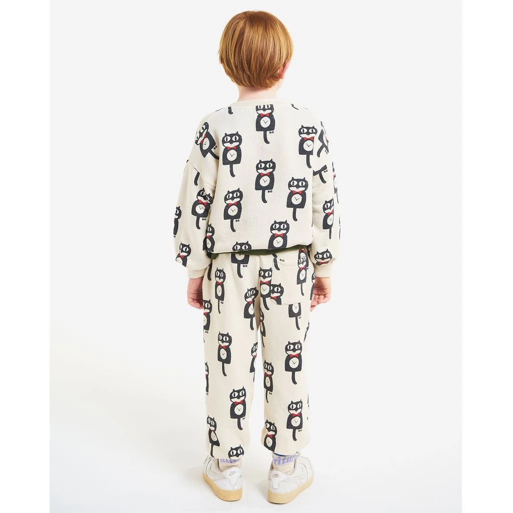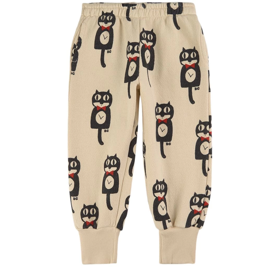 For a playful style. Beige Cat O’Clock sweatpants by Bobo Choses. The sweatpants have an elasticated waist. They have two front pockets, a back pocket and ribbed cuffs.