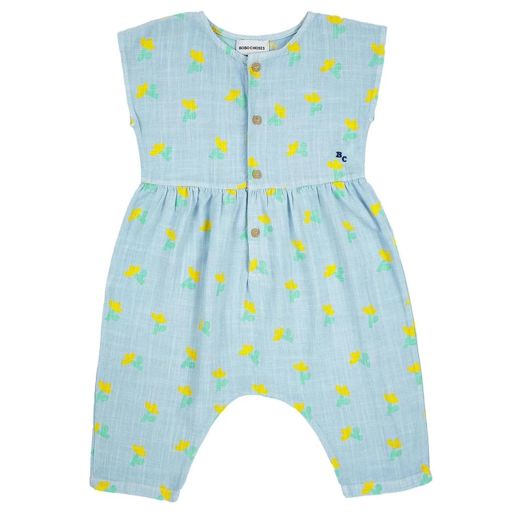 Add a pop of color to your day. Have fun on those adventures with this romper!. Blue romper by Bobo Choses. The romper has a floral all-over print. It has a button closure at the front.