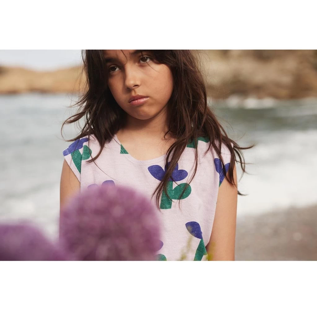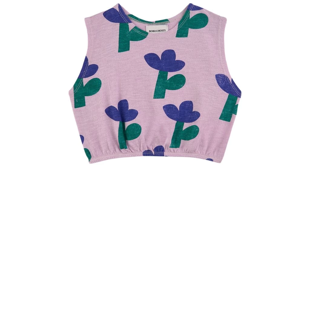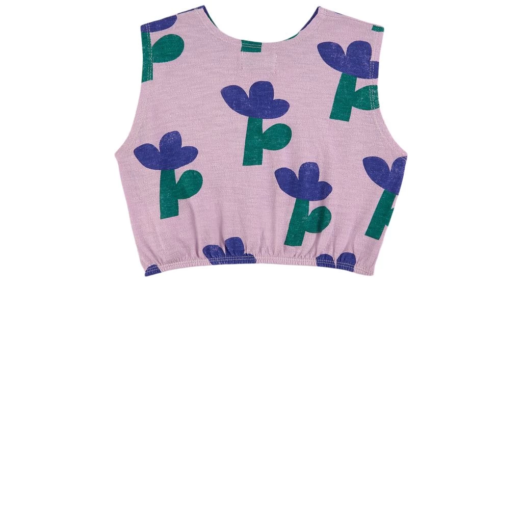 Chic and comfortable. Purple vest by Bobo Choses. The top has a floral all-over print. It has a cropped design.