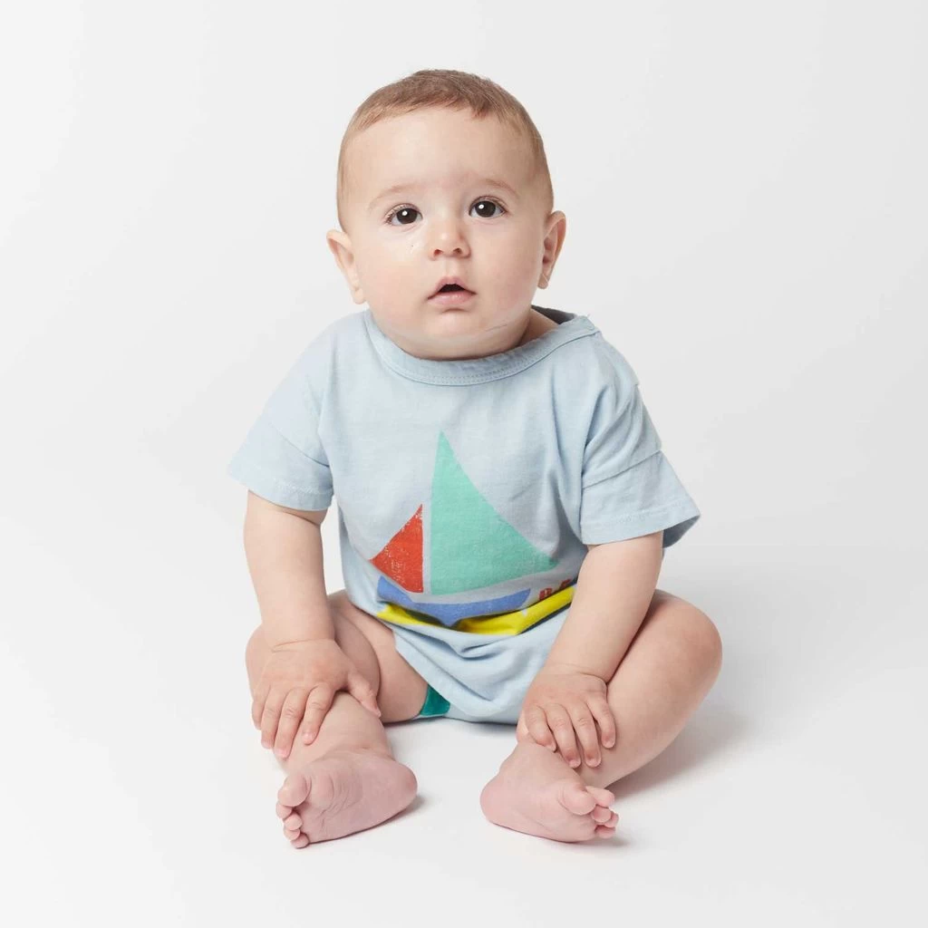 A T-shirt to keep you at your best. Blue T-Shirt by Bobo Choses. The T-Shirt has a regular fit. It has a print at the front and snap buttons at the shoulder.