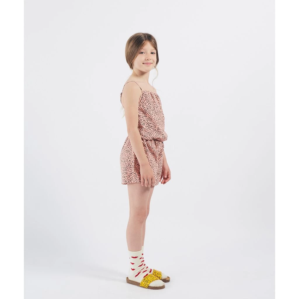 Fiercely fun, Bobo Choses’ pink patterned playsuit is a soft and stylish choice. There’s a cotton construction, gathered waist and elasticated straps. Finish with Velcro sandals for a summer-ready look.Â