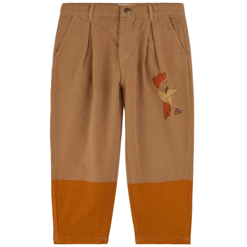 Get ready for play filled days. Brown Mr O’clock chinos by Bobo Choses. The pants have an adjustable button-elastic waist. They have a zip fly with snap button, two front pockets and faux pockets at the back.