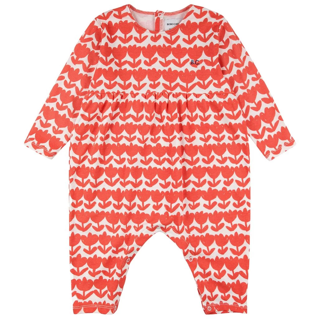 A onesie for every mood! It’s time to snuggle up. White, red one-piece by Bobo Choses. The one-piece has a playful all-over print. It has snap buttons at the back and between the legs.