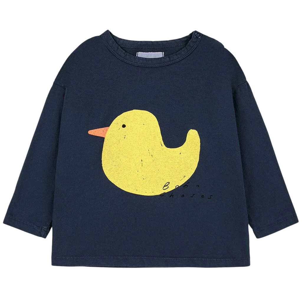 Let your baby explore and play in comfort. Navy Rubber Duck T-Shirt by Bobo Choses. The T-Shirt has a regular fit. It has snap buttons at the shoulder.