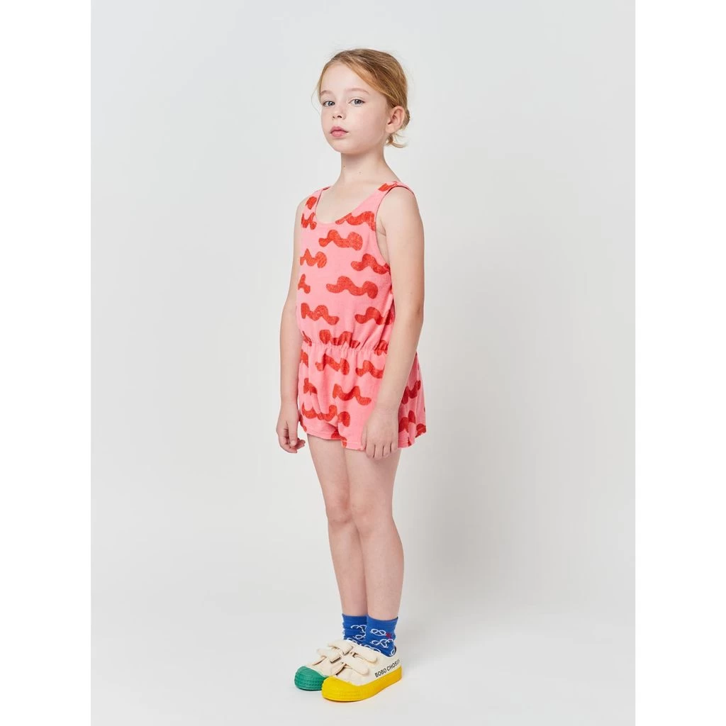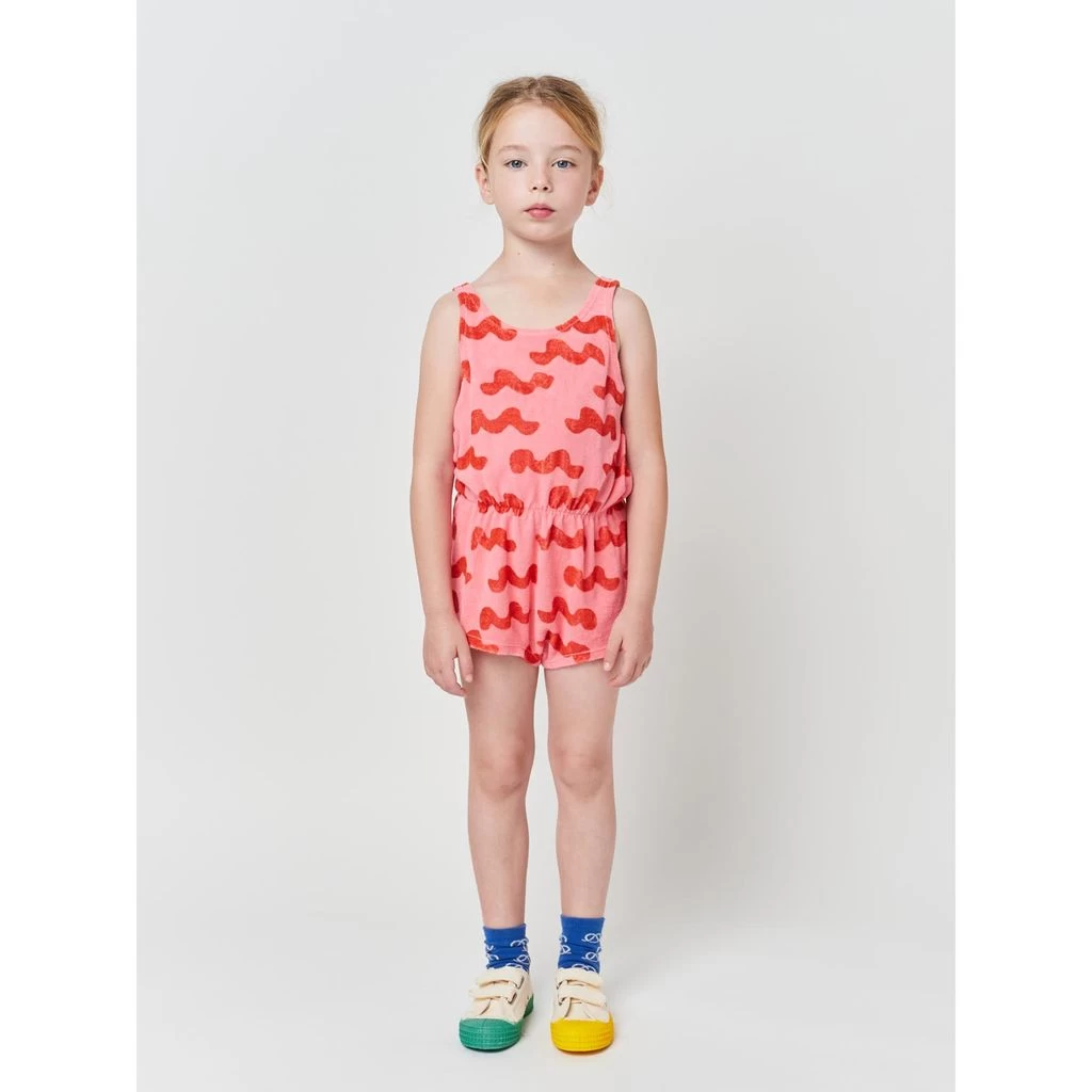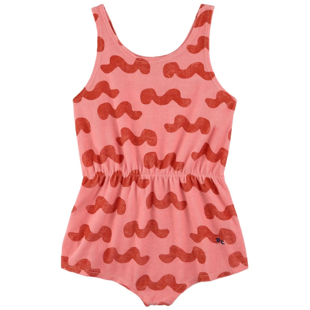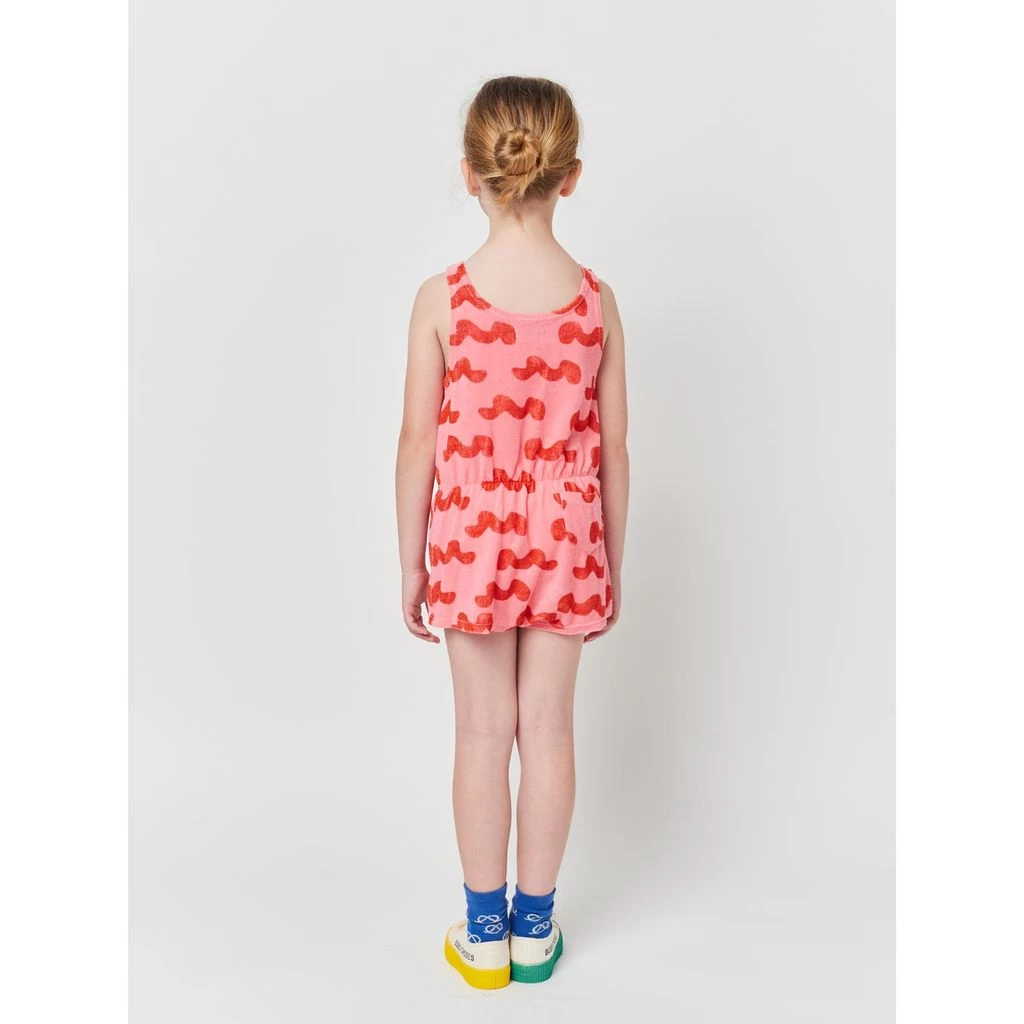 Perfect for those sunny days. Pink romper by Bobo Choses. The romper has a soft terry material. It has a playful all-over print, an elasticated waist and a back pocket.