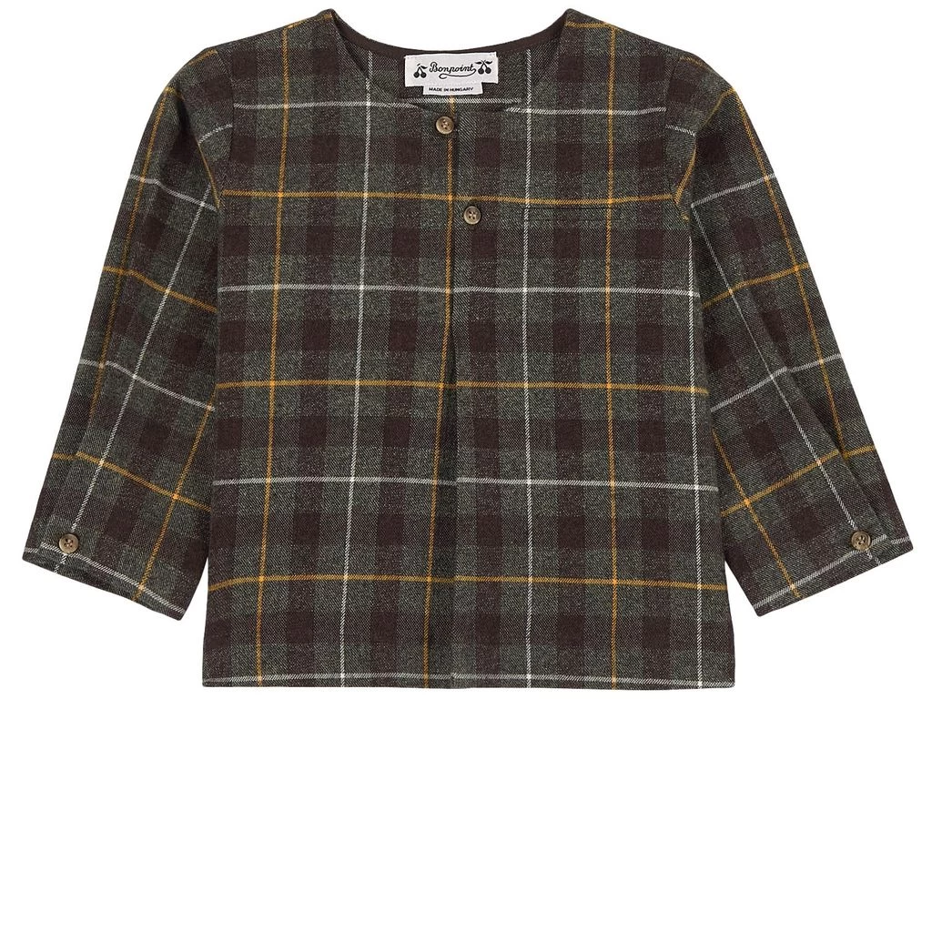 This shirt combines simplicity with a great deal of style. Khaki Gauguin shirt by Bonpoint. The shirt has a checked pattern. It has a button closure at the front and button cuffs.