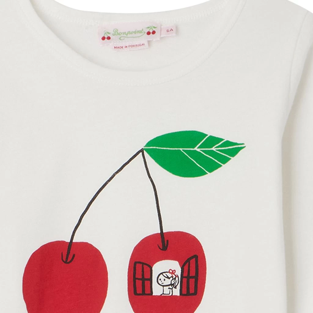Get a new look with this stylish T-shirt. Cream, long sleeved Tidjiane T-Shirt by Bonpoint. The T-Shirt has a regular fit. It has a cherry print at the front.