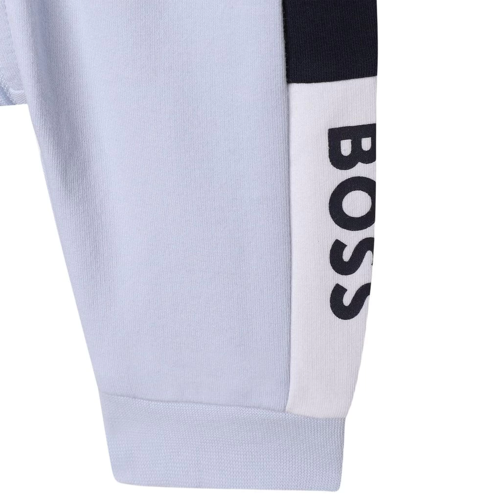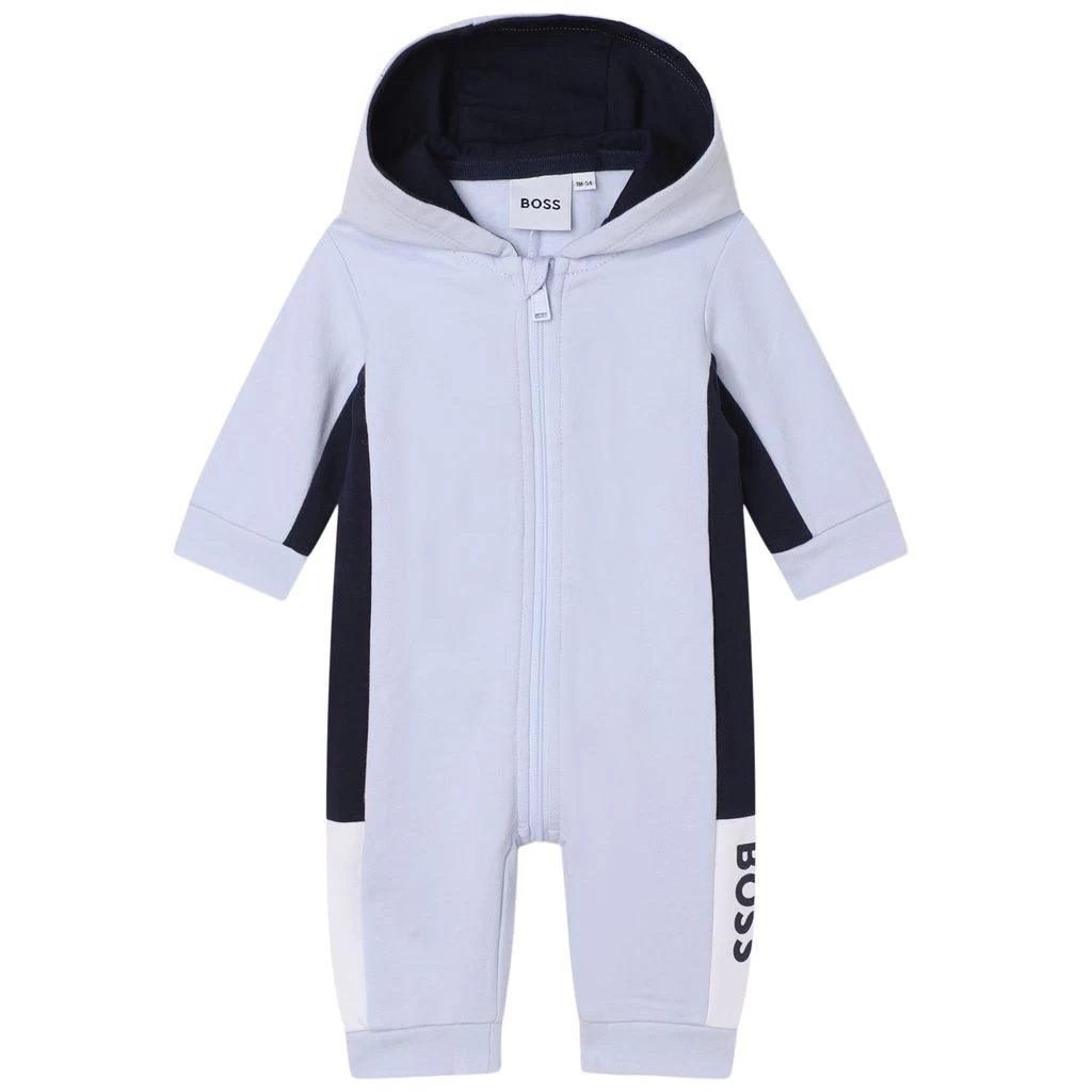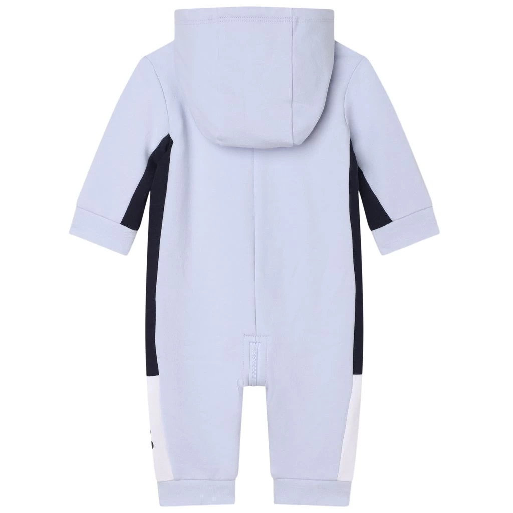 A onesie for every mood! It’s time to snuggle up. Blue onesie by BOSS. The onesie has a jersey-lined hood. It has a zip closure at the front and ribbed cuffs.