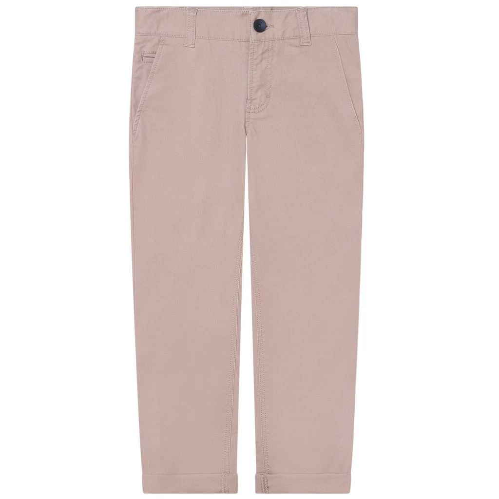 Classic but trendy pants that work great with your favorite outfit. Beige trousers by BOSS. The trousers have an adjustable button-elastic waist. They have a zip fly with button, two front pockets and a back pocket.