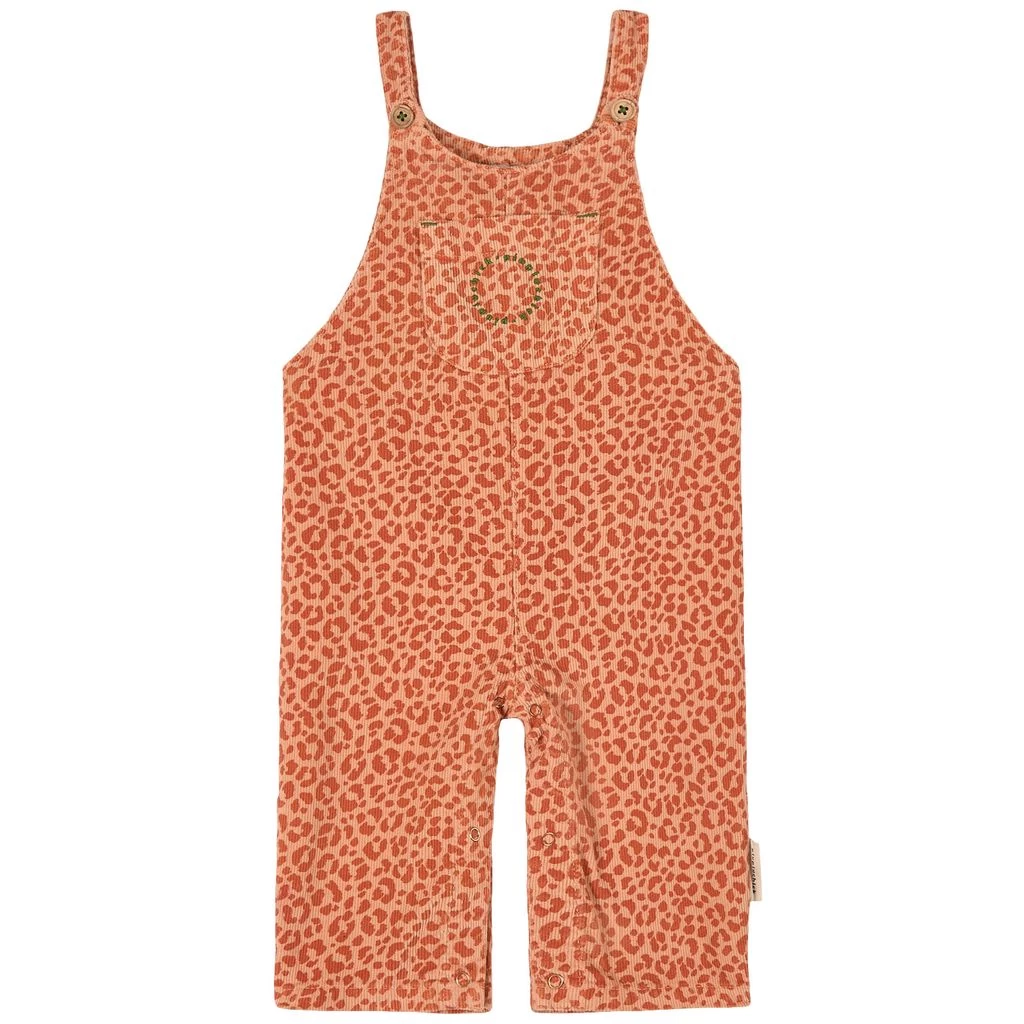 Dress up in sun-kissed colors. Pink overalls by Piupiuchick in corduroy. The overalls are made in Portugal and have an all-over print. They have adjustable shoulder straps, a branded chest pocket and a snap button closure between the legs.