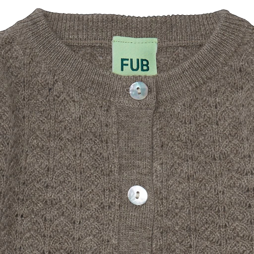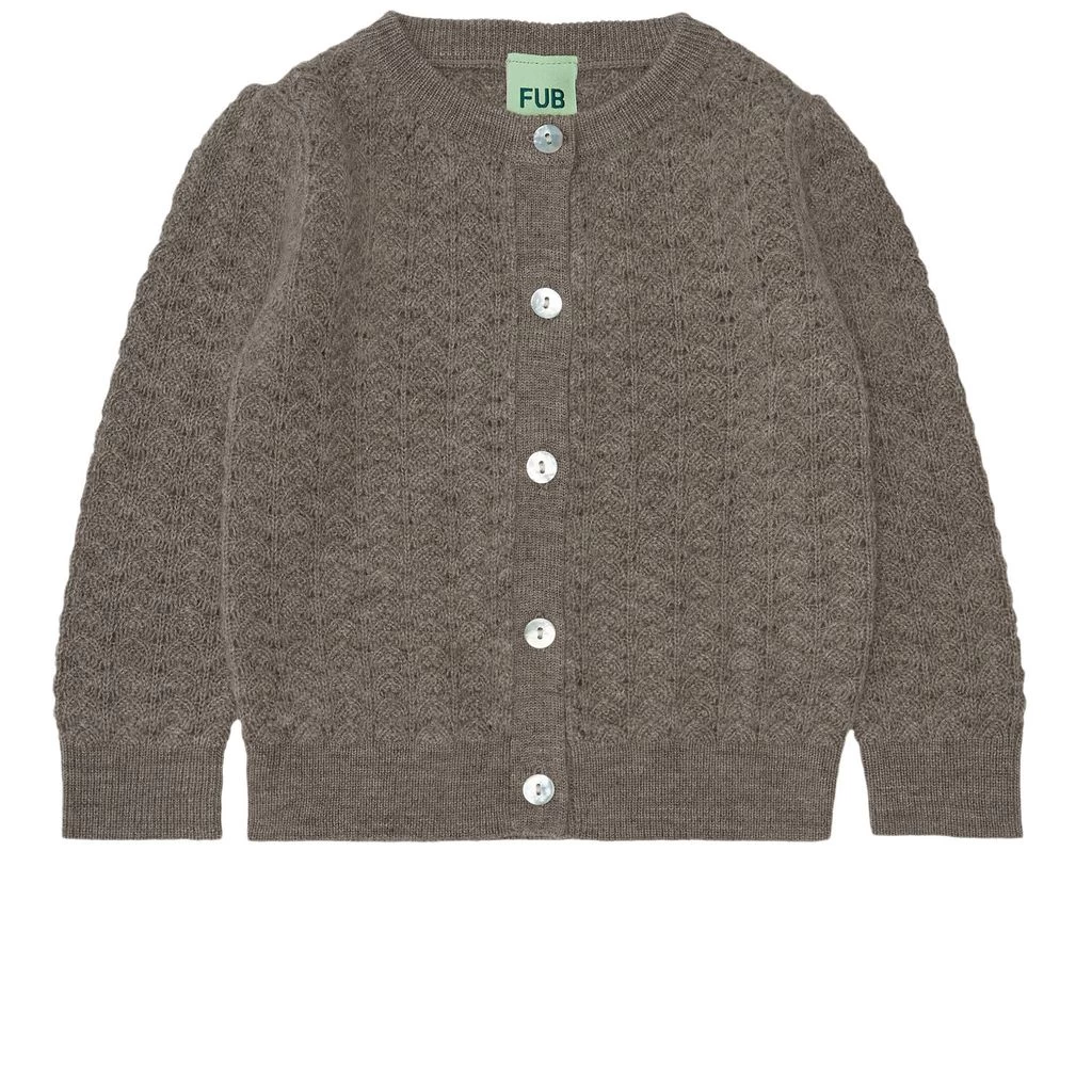 A nice and soft cardigan for your baby. Beige cardigan by FUB. The cardigan has a knitted design. It has pointelle detailing, a button closure at the front and rib-knit cuffs.
