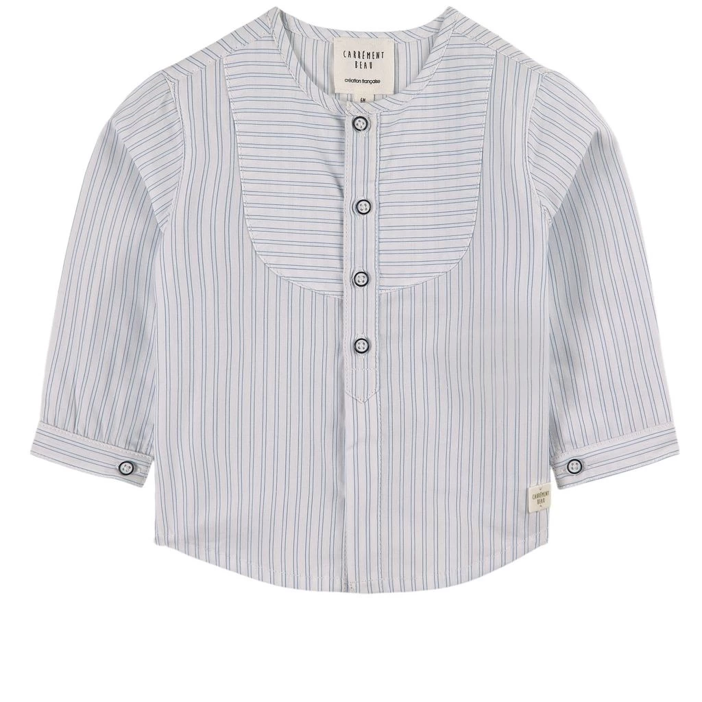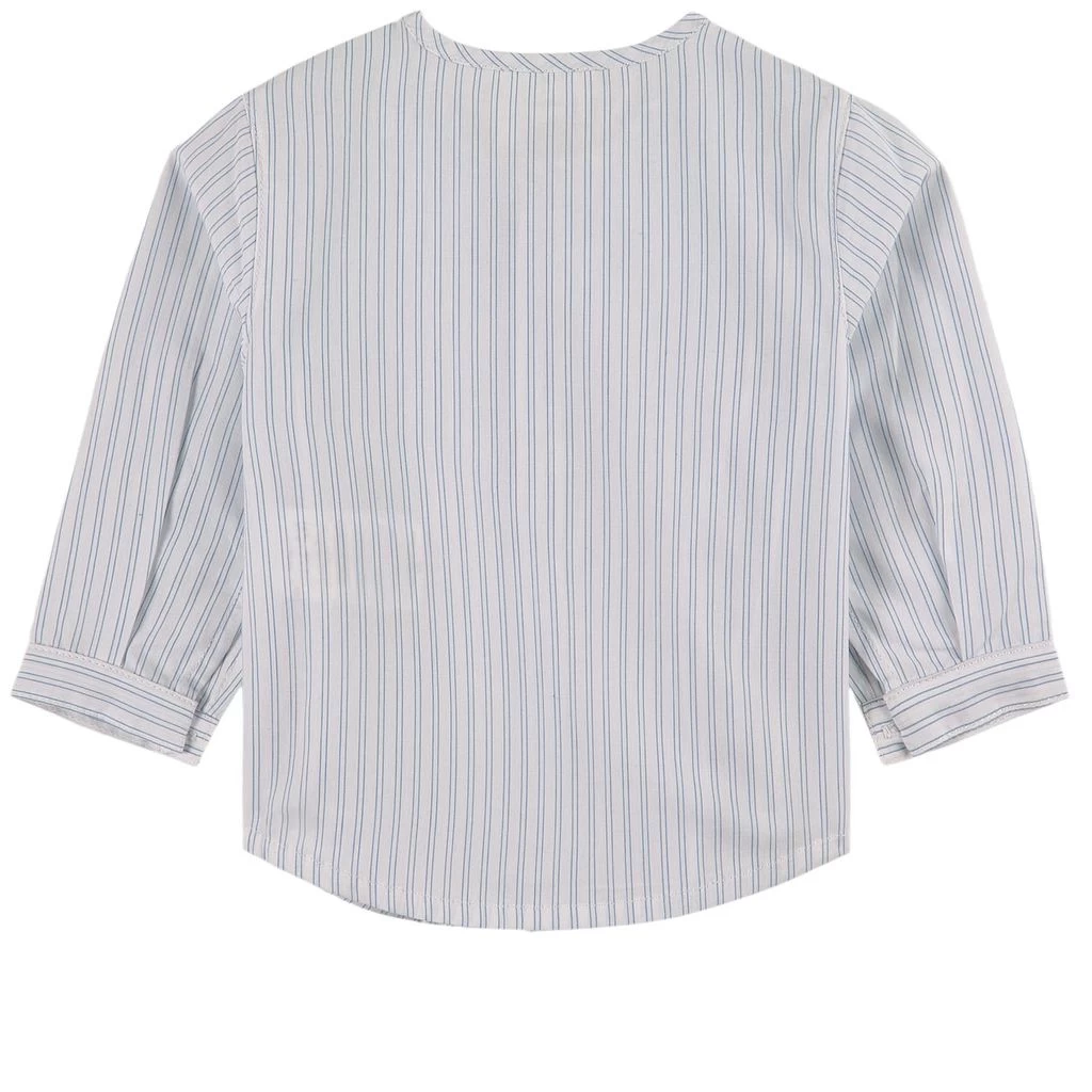 White Striped shirt by Carrément Beau. The shirt has a button closure at the front. It has single button cuffs, a rounded hem and a round neck.