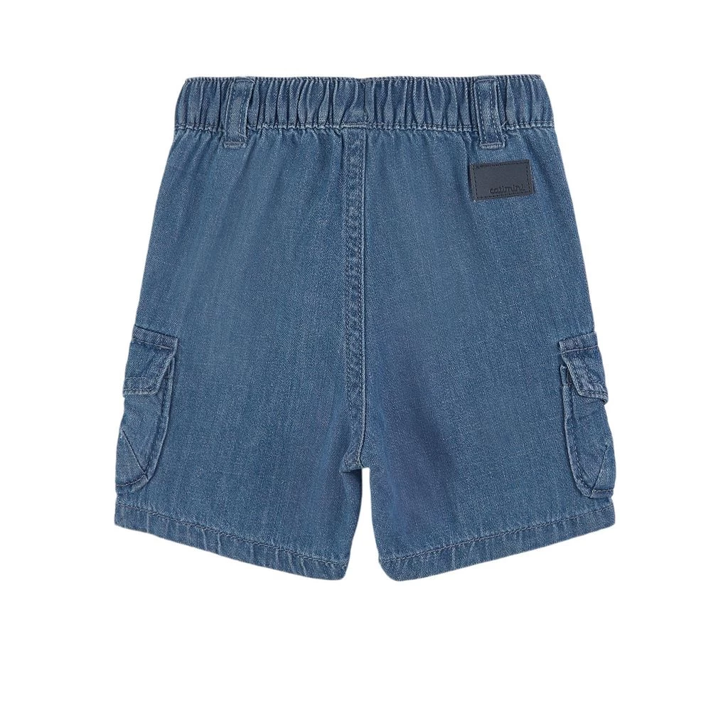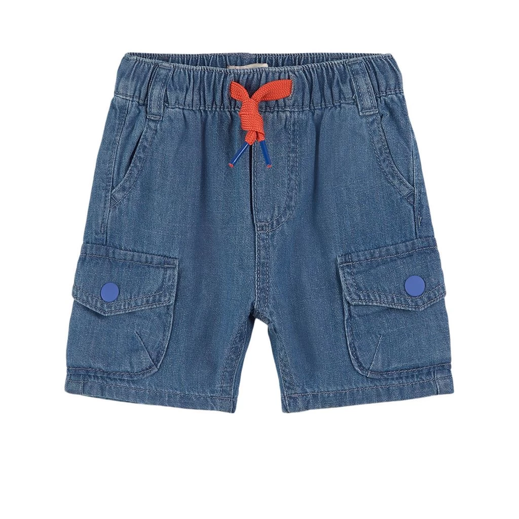 The perfect summertime look. Blue Denim shorts by Catimini. The shorts have an elasticated drawstring waist. They have two side pockets, two large front pockets and belt loops.