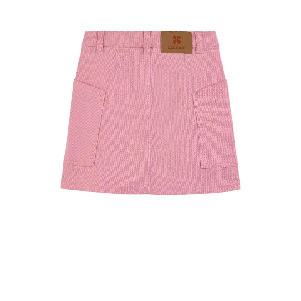 A denim skirt that’s perfect for any day. Pink skirt by Catimini. The skirt has an adjustable button-elastic waist. It has a button closure at the front and two front pockets.