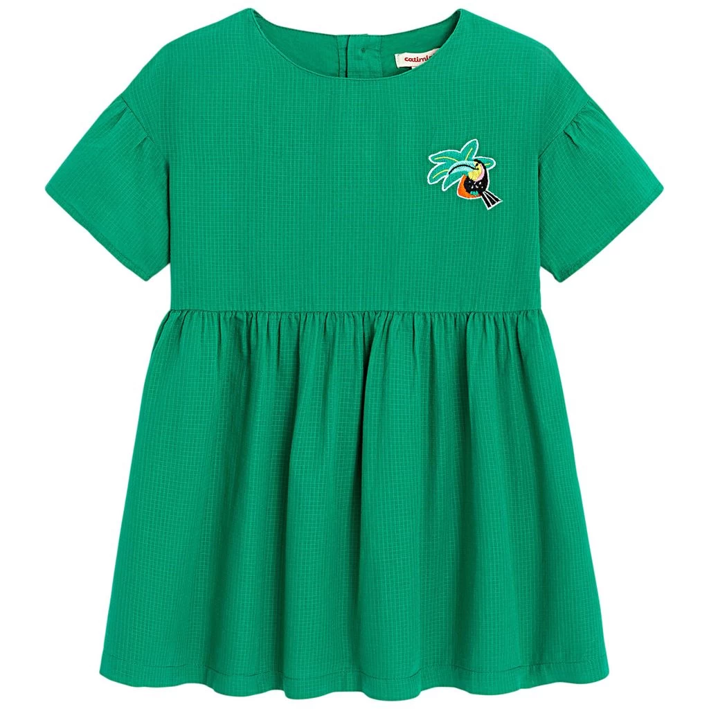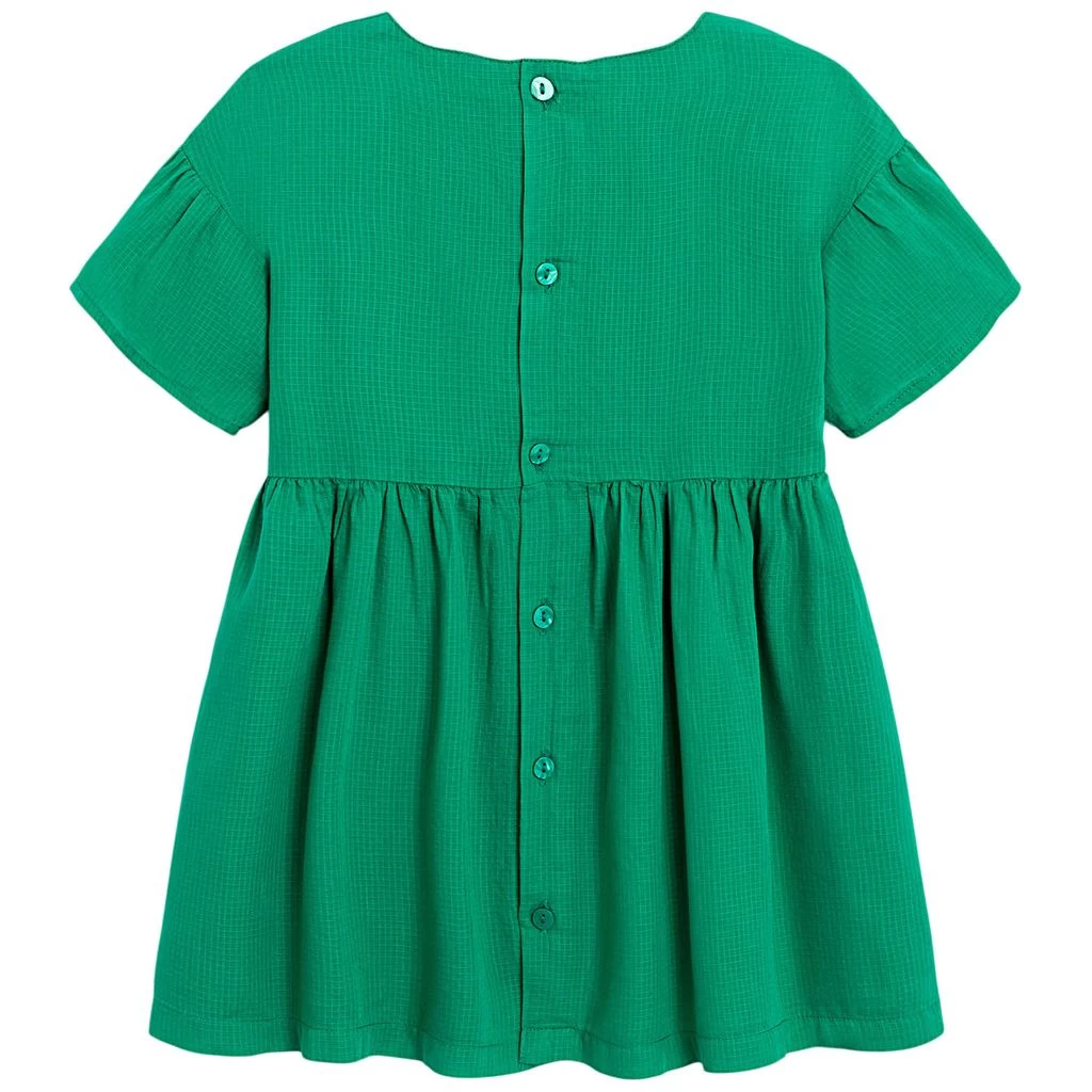 Dress your little baby extra nicely. Green dress by Catimini. The dress has soft lining. It has a button closure at the back and a gathered waist.