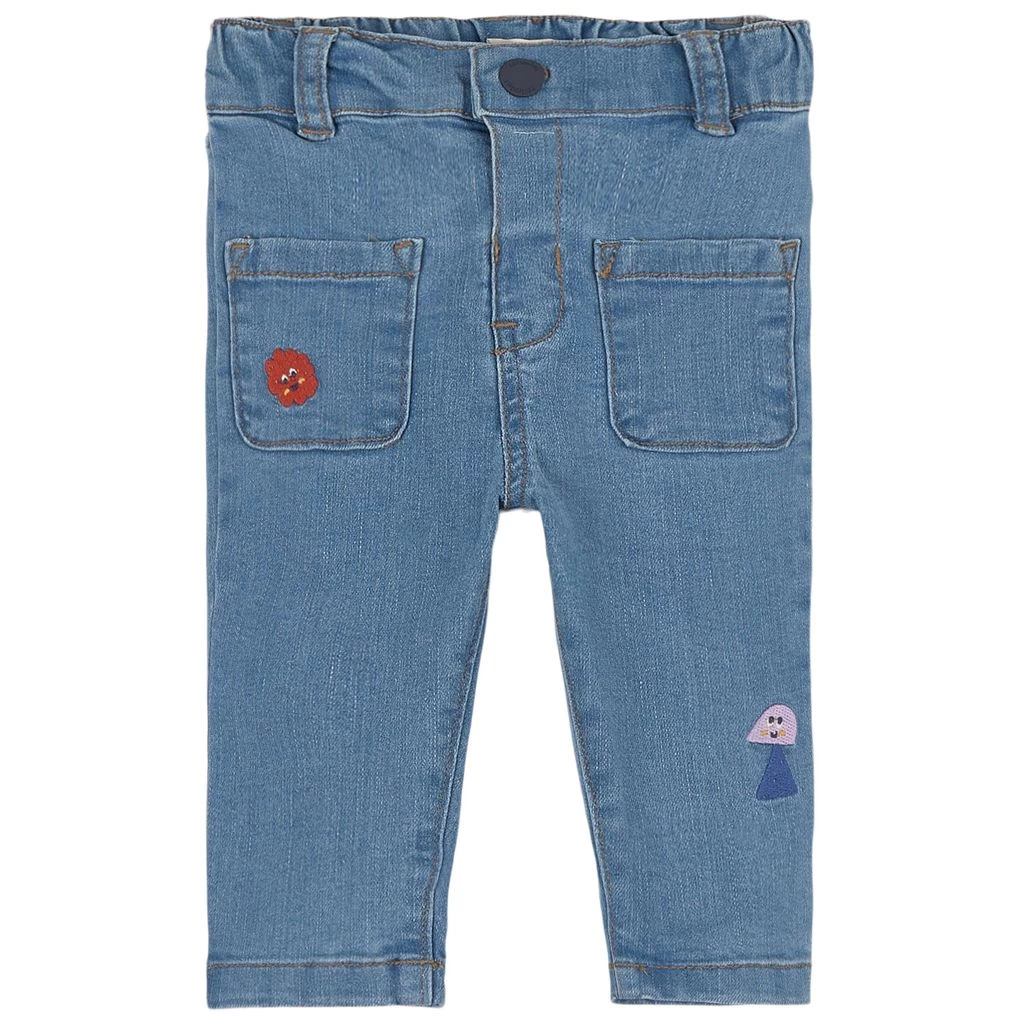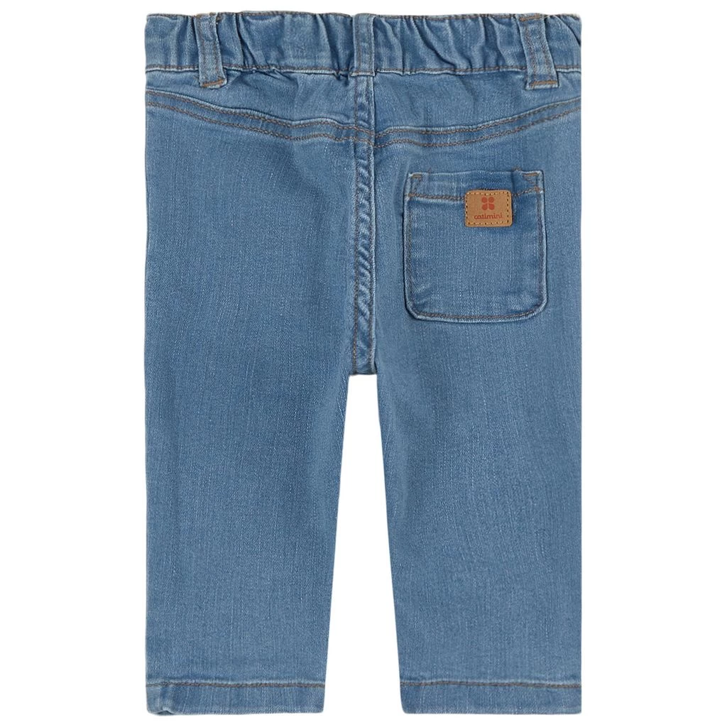 Your little one can play all day in comfort. Blue Kany jeans by Catimini. The jeans have an elasticated waist. They have a fly with snap button, two front pockets, a back pocket and embroidered details.