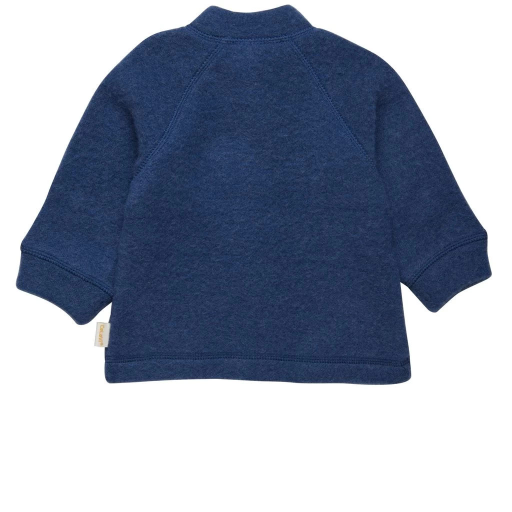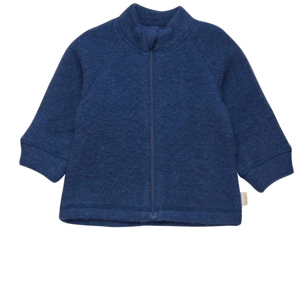 Keep warm with comfy fleece. Blue wool fleece jacket by CeLaVi. The wool fleece jacket has a zip closure at the front. It has ribbed cuffs.