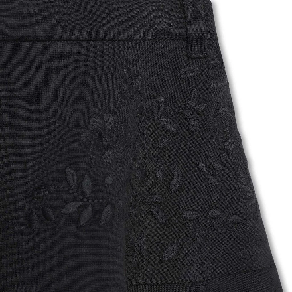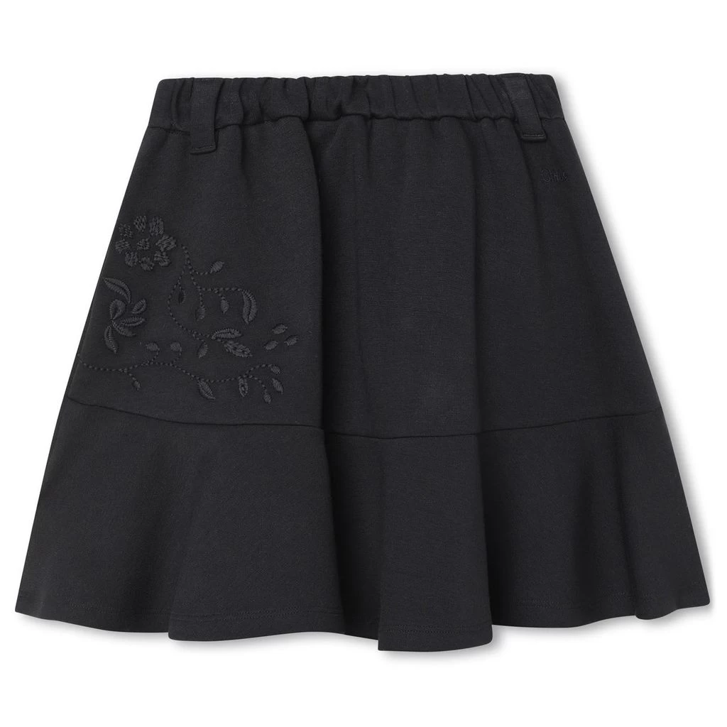 Look amazing in this fashionable skirt. Black skirt by Chloé. The skirt has an elasticated waist. It has flower embroidery at the front.