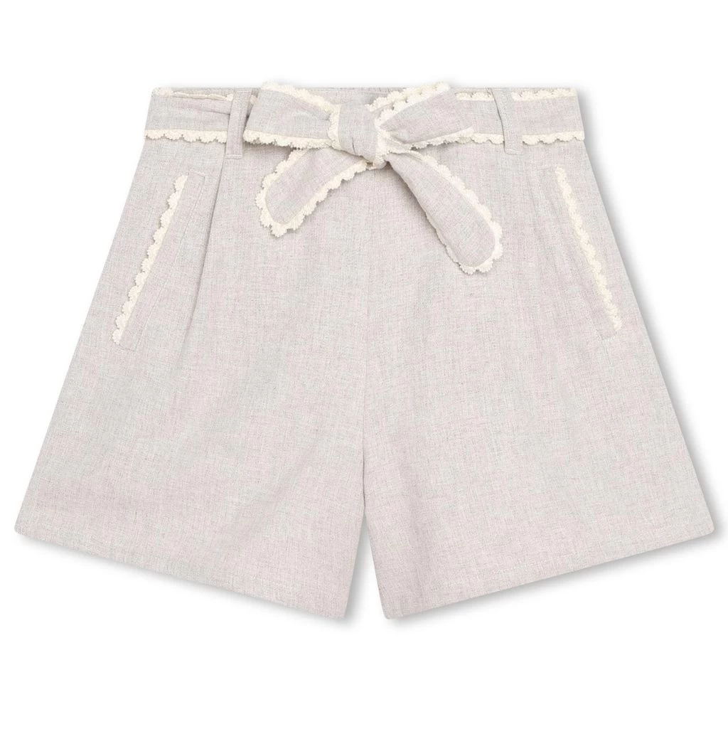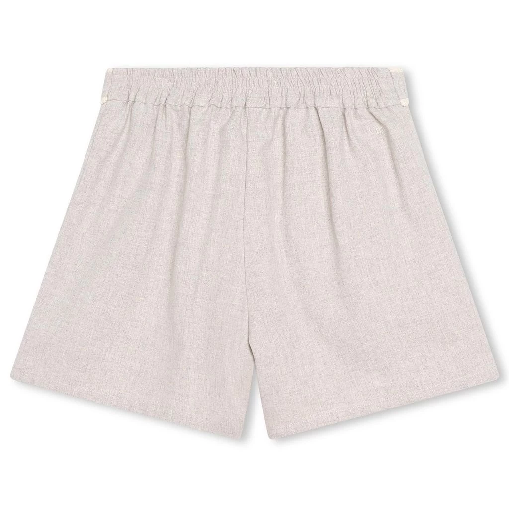A pair of trendy shorts that can be worn with a variety of outfits. Beige shorts by Chloé. The shorts have an elasticated waist. They have a tie detail at the waist and two front pockets.