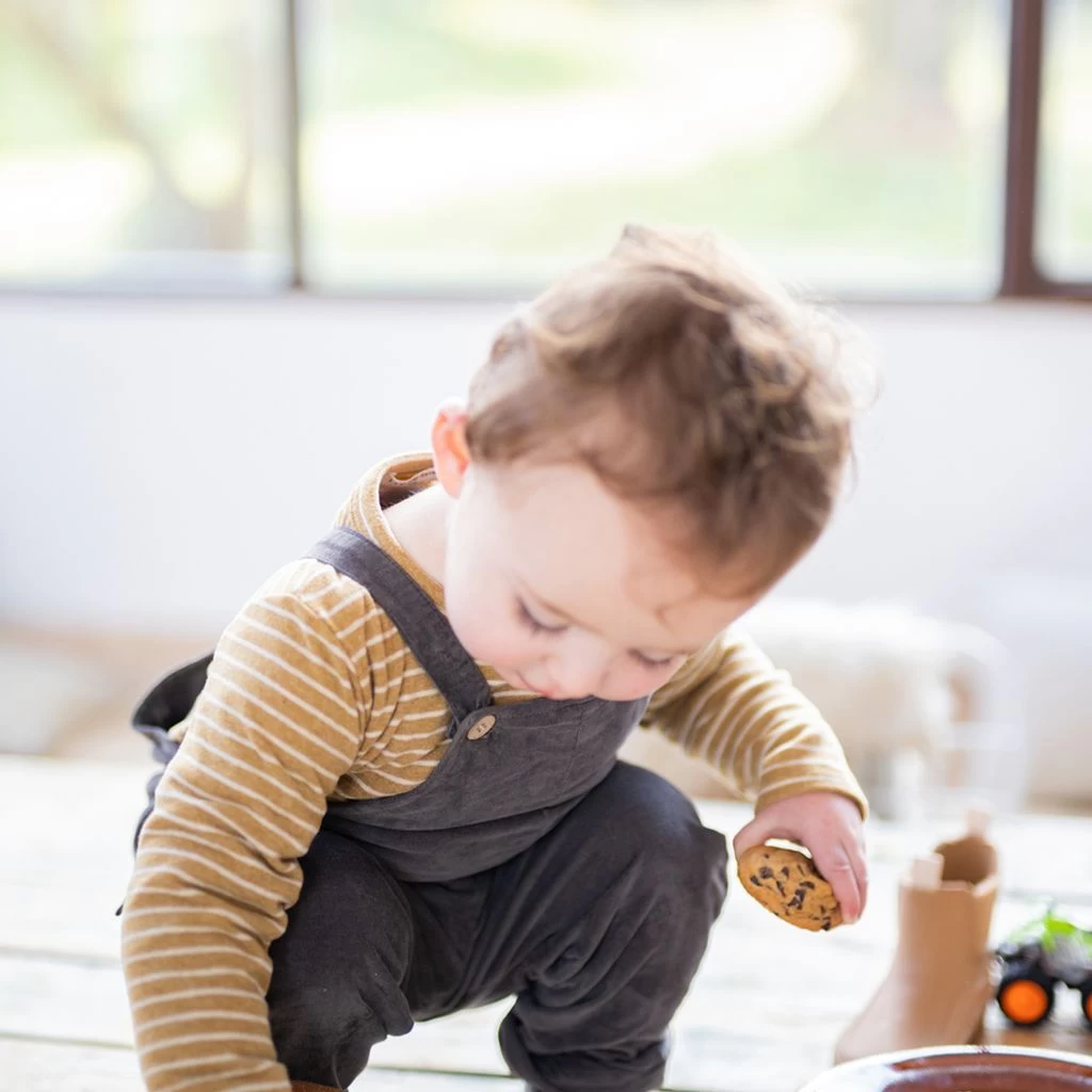 Grey corduroy overalls by 1+ In The Family. The corduroy overalls has button closures at the shoulders and at the sides. It has two side pockets.