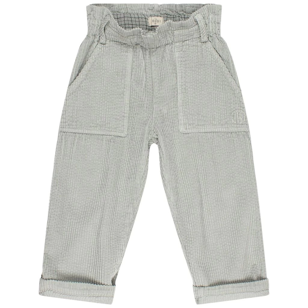 The pants are comfortable, casual and look great. Grey trousers by búho. The trousers have front pockets. They have belt loops.
