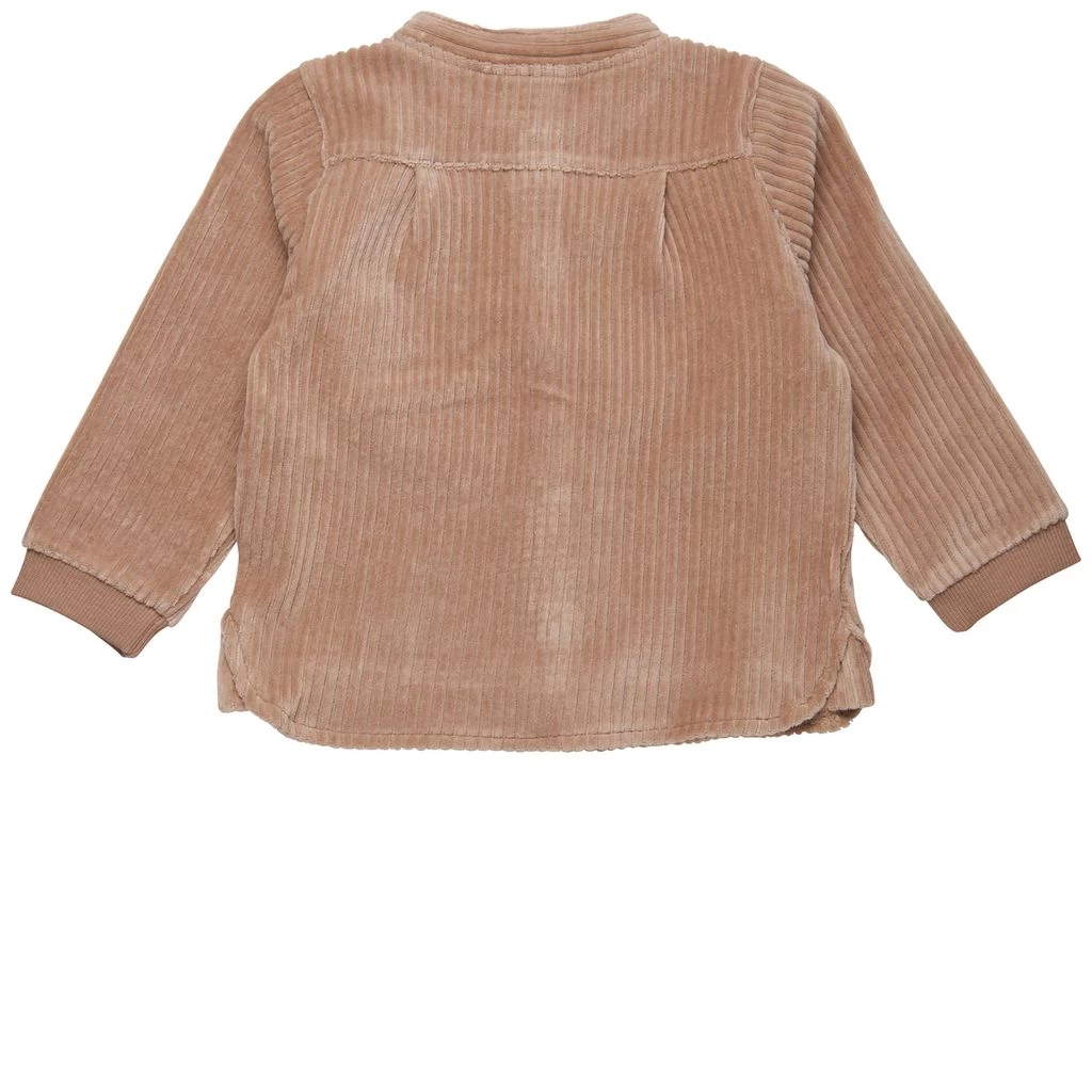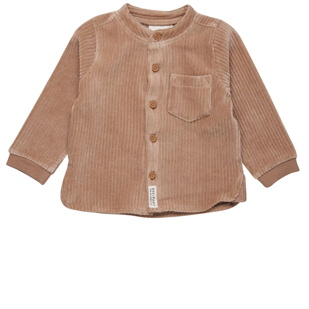 Enjoy the day in style. Beige corduroy shirt by EnFant. The shirt is made of velour and has a button closure at the front. It has a chest pocket, ribbed cuffs and a brand patch on the bottom front.