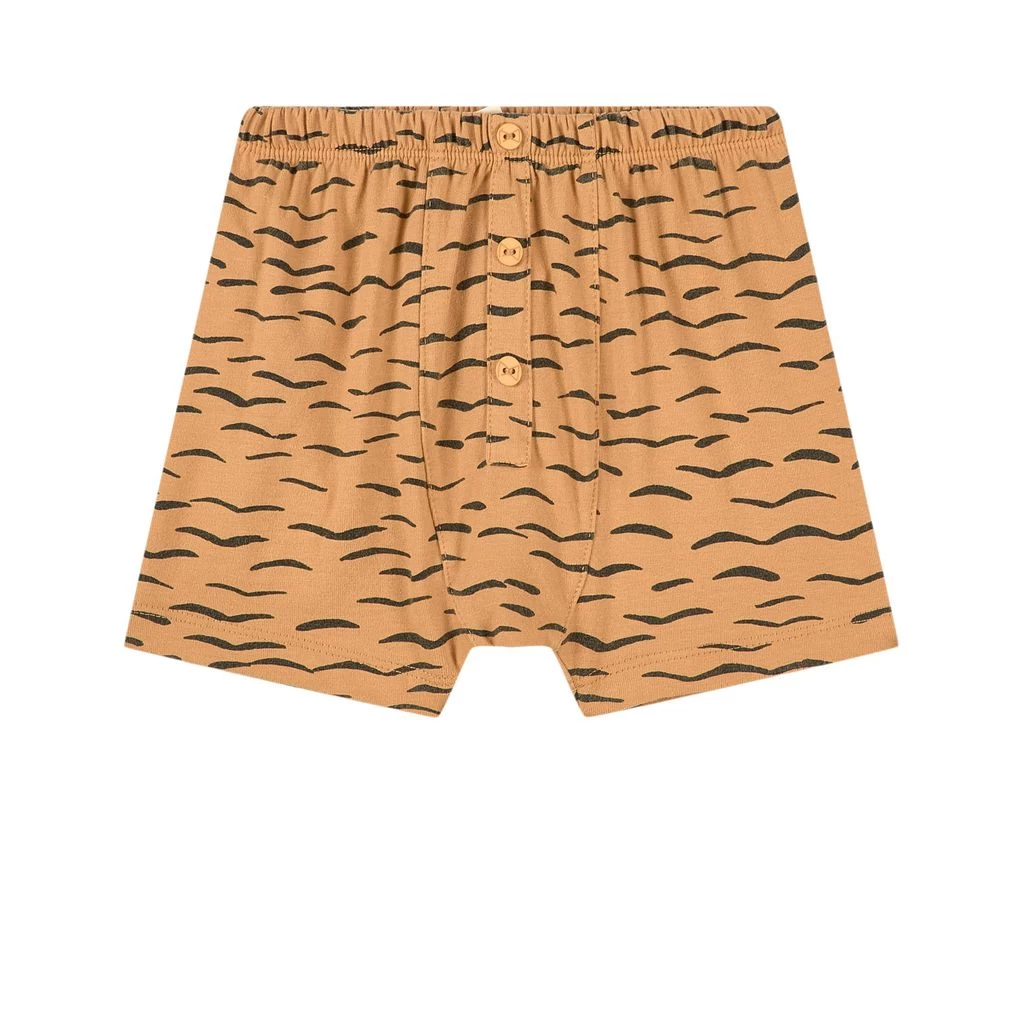 Beige Cotton shorts by Mini Sibling. The shorts are made in Portugal and have an all-over print. They have an elasticated waist.