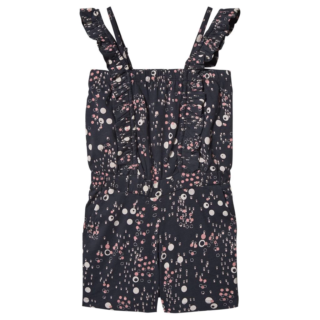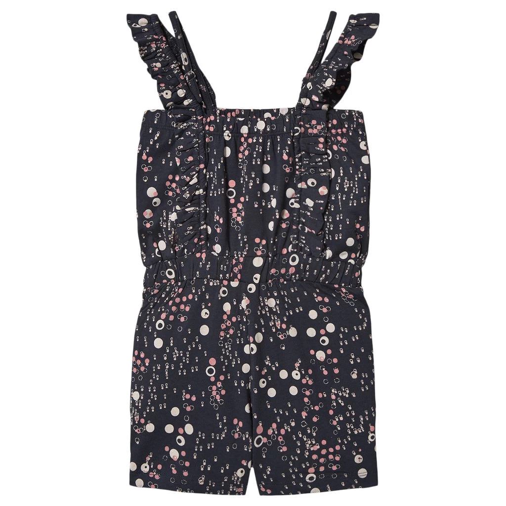 Blue Dot romper by Creamie. The romper has adjustable shoulder straps. It has an elasticated waist, an elasticated neckline and two side pockets.