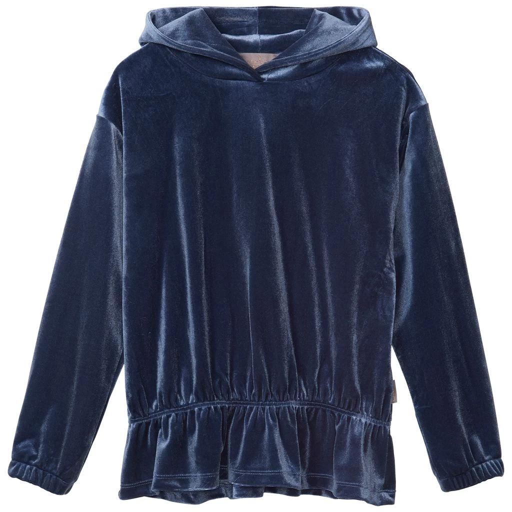 A super soft and comfy hoodie that’s just right for a laid back look. Blue hoodie by Creamie. The sweater is made of velour and has a regular fit. It has gathering and cuffs.