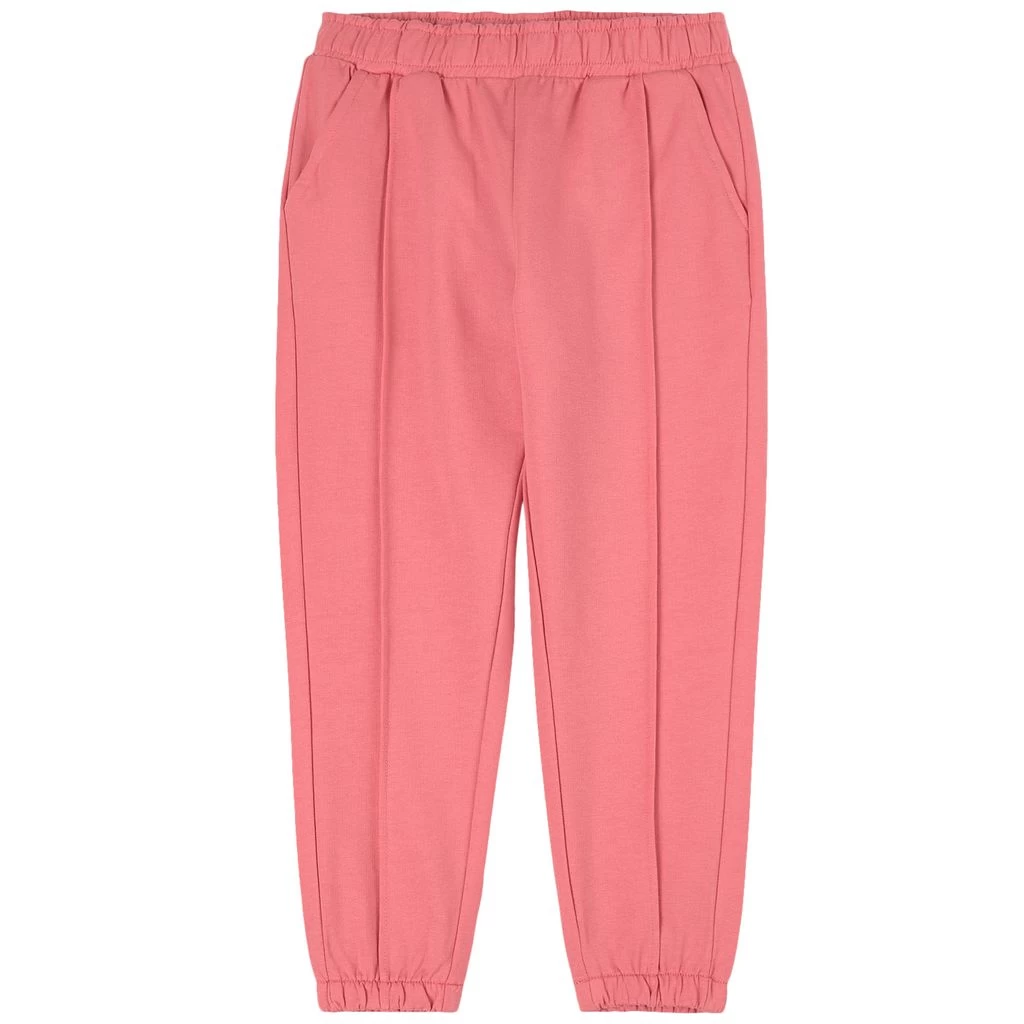 Pink sweatpants by Creamie. The sweatpants have an adjustable button-elastic waist. They have an elasticated waist, slanted front pockets and elasticated cuffs.