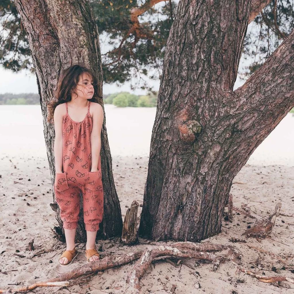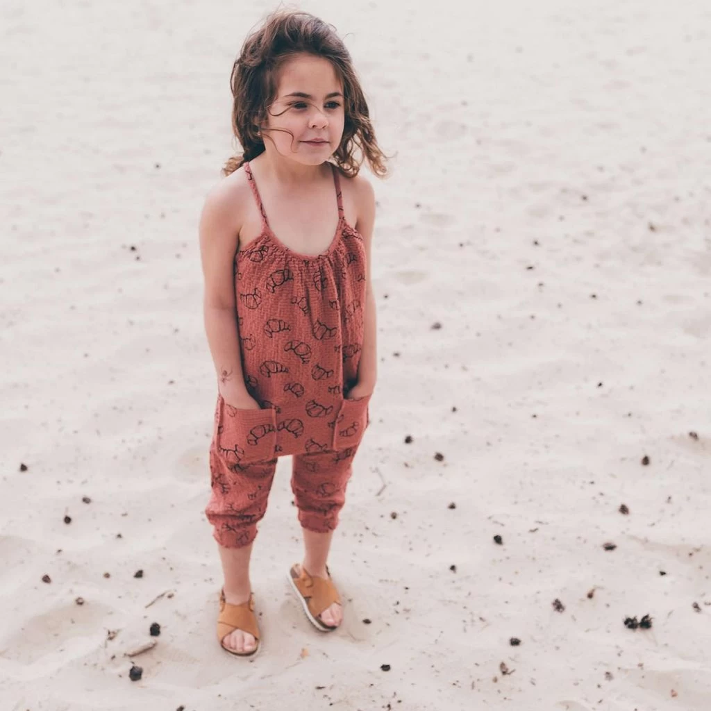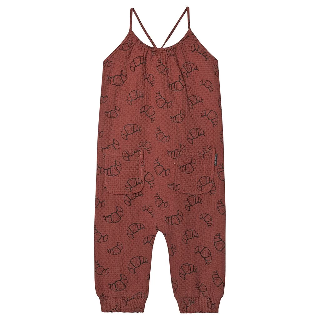 Jump into warmer days with Sproet and Sprout’s new season offerings! This brown jumpsuit is fashioned from a breezy waffle cotton and completed with patch pockets to the front, an all-over croissant print, slim straps and elasticated hems. Top with a straw hat for a whimsical touch to sunny style.Â