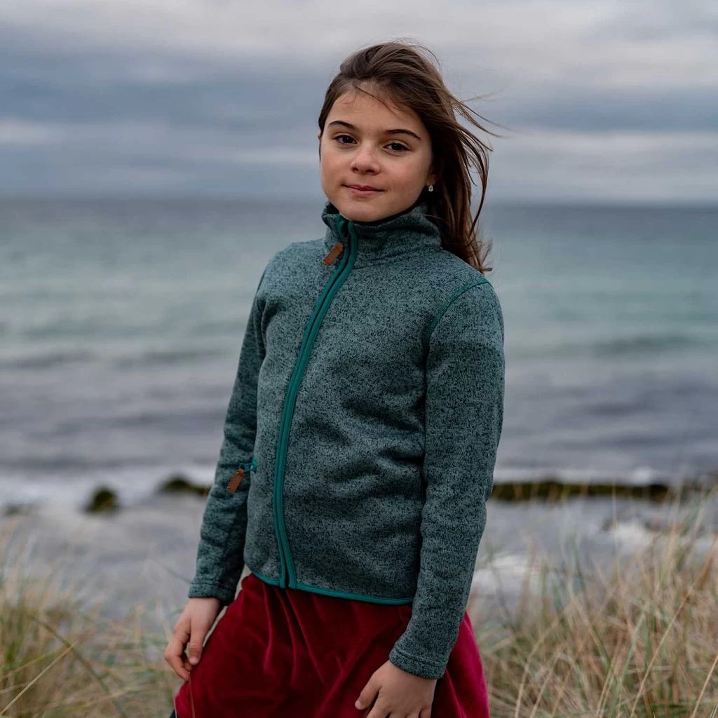 Green Dash fleece jacket by ebbe Kids. The jacket has a zip fastening at the front. It has a zip pocket and contrasting stitching.