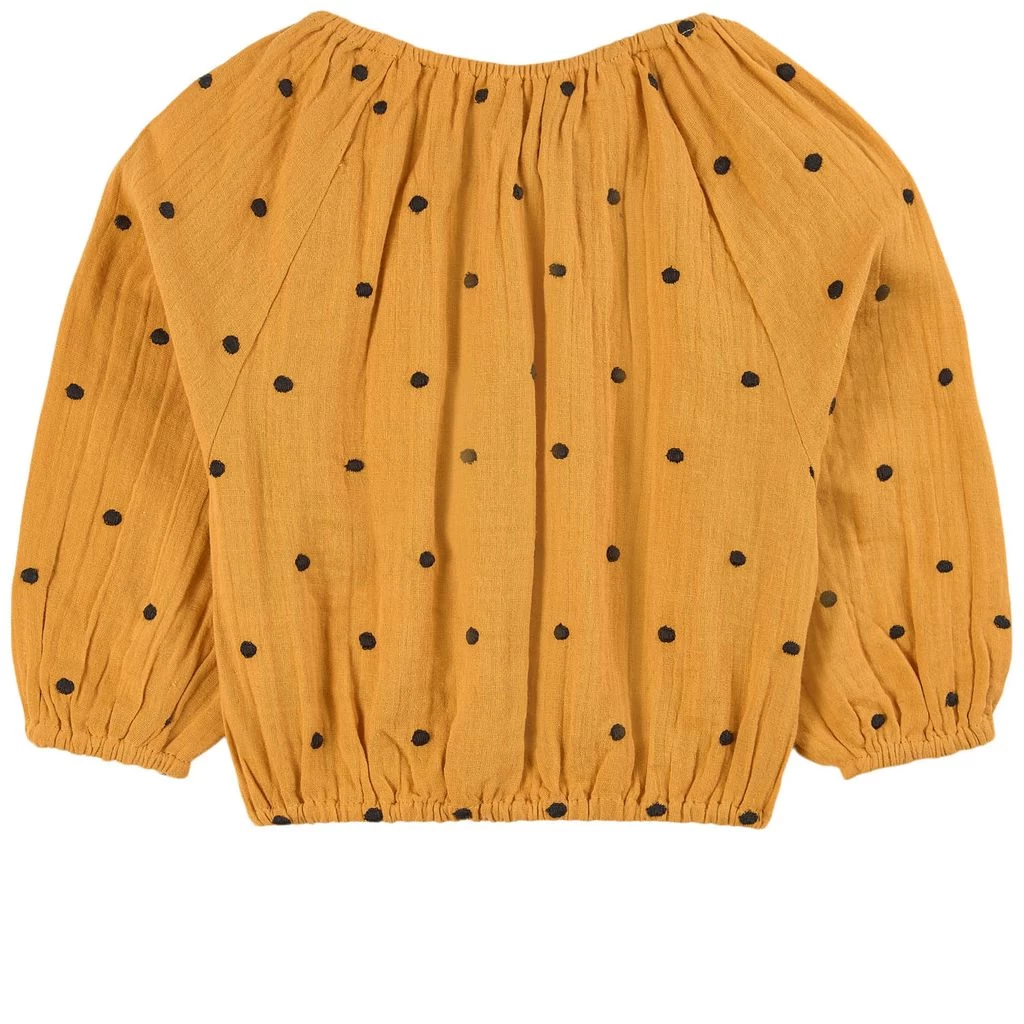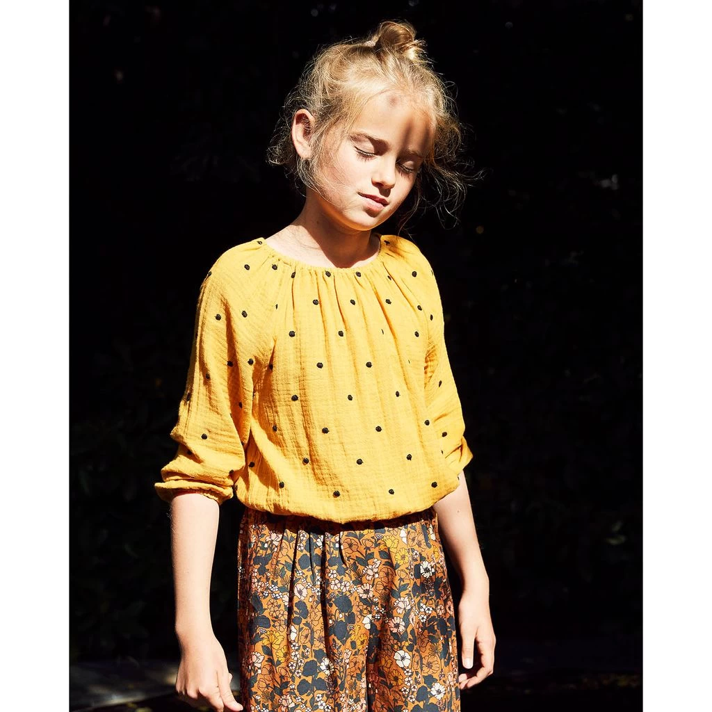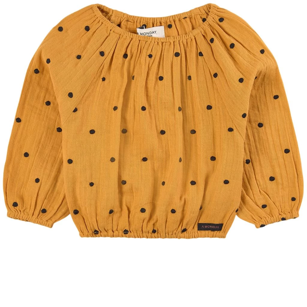 Yellow Didi blouse by A Monday in Copenhagen. The blouse has 3/4 length sleeves. It has an elasticated neckline and a loose fit.