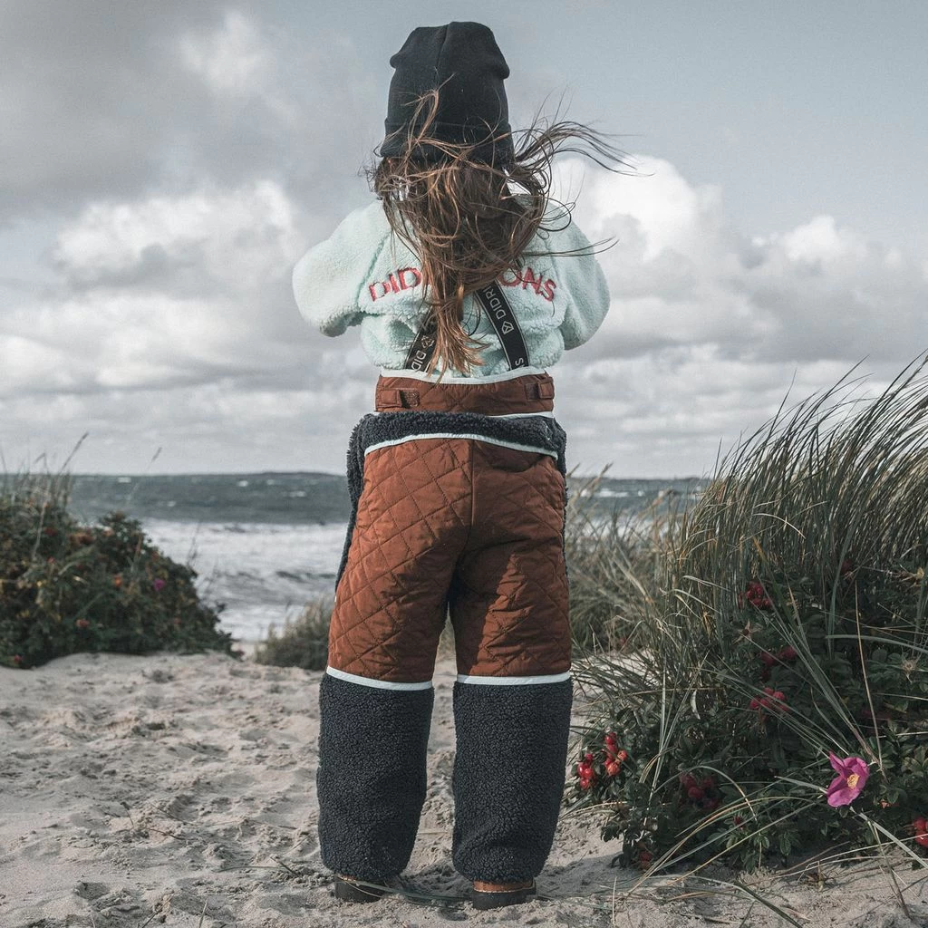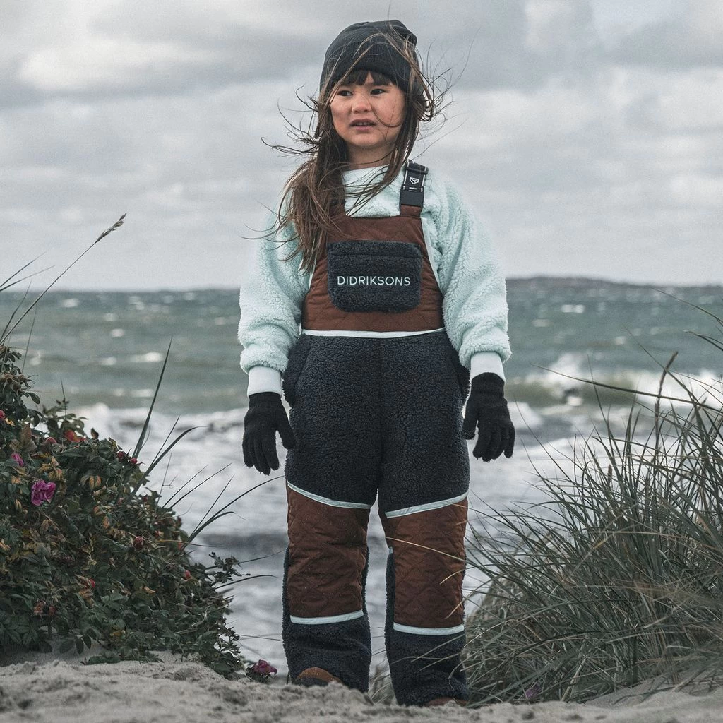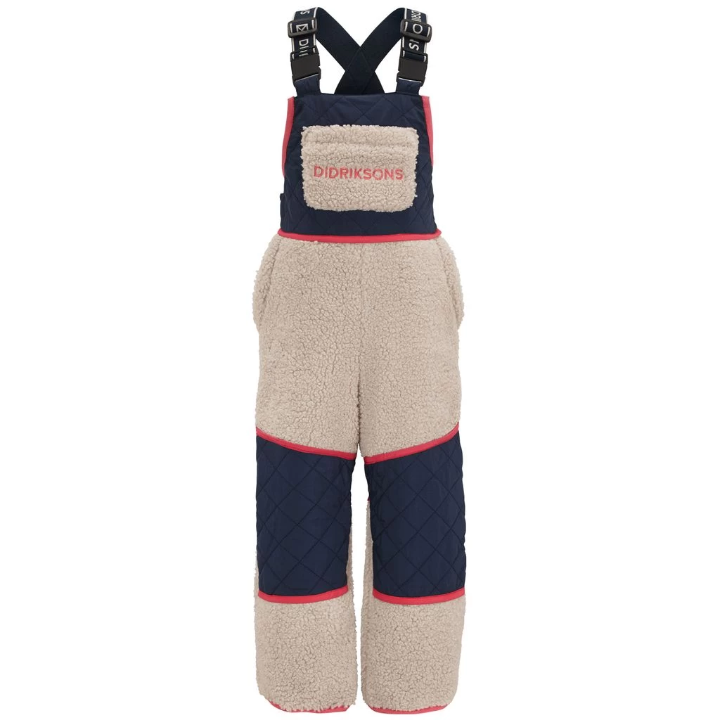 Get ready for outdoor adventures. Beige Ben Kids fleece pants by Didriksons. The fleece pants have adjustable, elasticated shoulder straps. They have an adjustable waist with velcro straps and two front pockets.