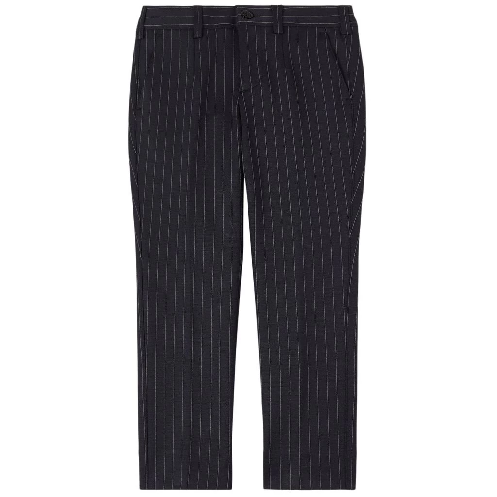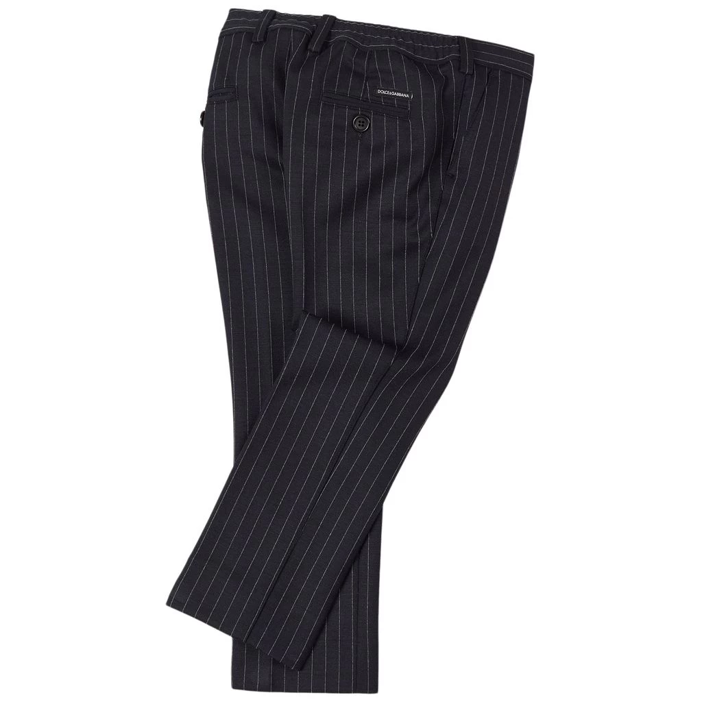Black Classic Pinstripe trousers by Dolce & Gabbana. The trousers are made in Italy and have an elasticated waist. They have two front pockets, a zip fly with a button closure at the front and pockets with button closure at the back.