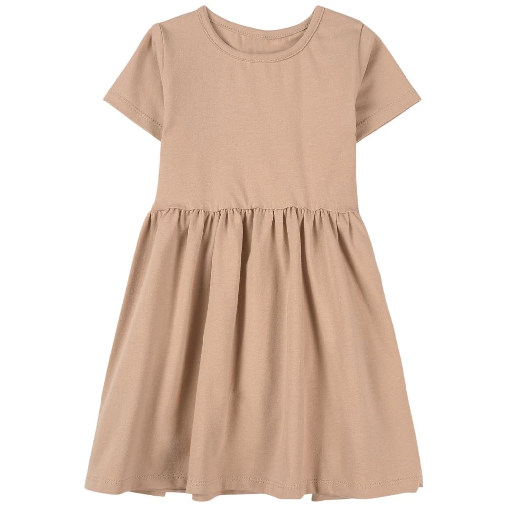 Sand dress by A Happy Brand. The dress has a gathered elasticated waist. It has a flared skirt.
