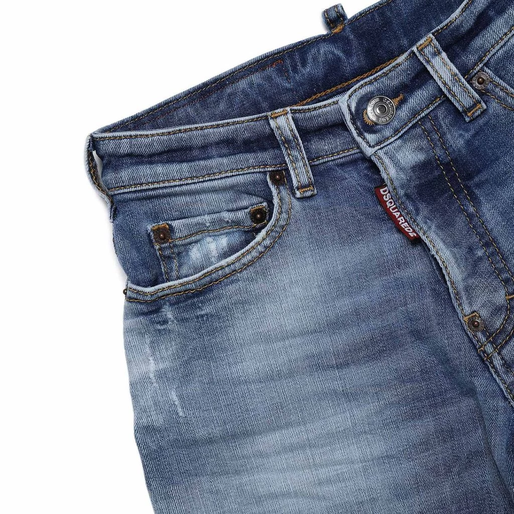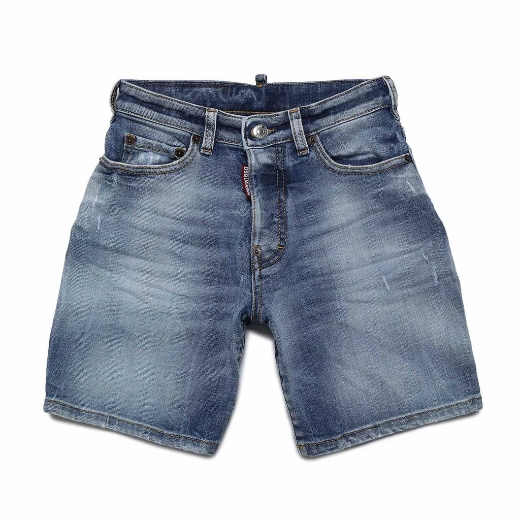 Blue Denim bermuda shorts by DSquared2. The shorts are made in Italy and have a 5-pocket design. They have a button closure at the waist with a button fly and hard worn details.