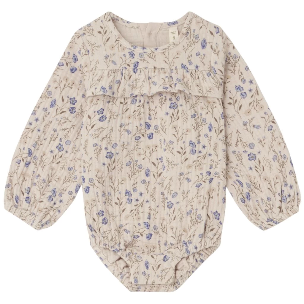 Dress your little baby extra nicely. Beige romper by Garbo&Friends. The romper has a floral all-over print. It has a button closure at the back, snap buttons between the legs and elasticated cuffs.