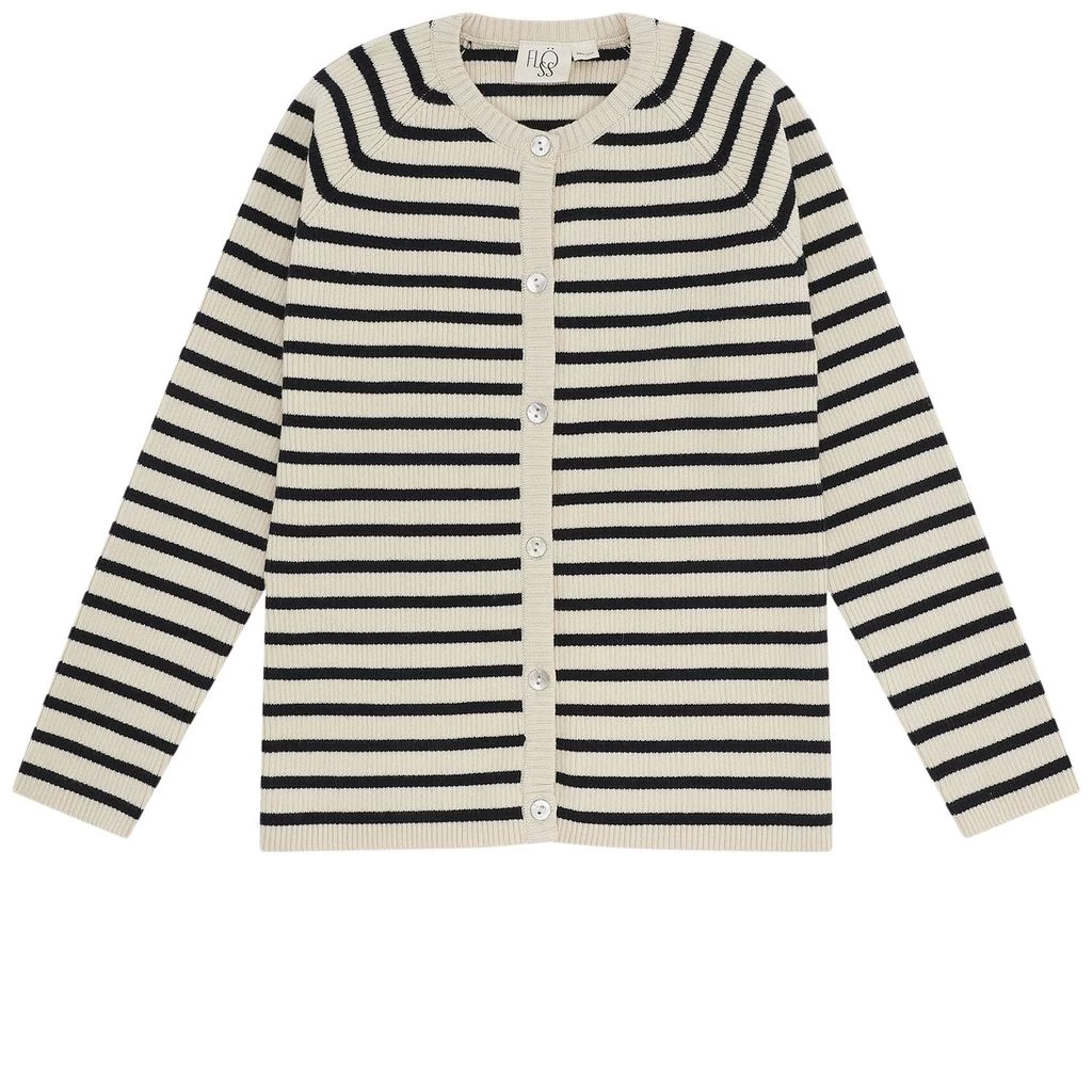 Nice and cozy cardigan!. Off white Flye cardigan by Flöss. The cardigan has a striped design. It has a button closure at the front.