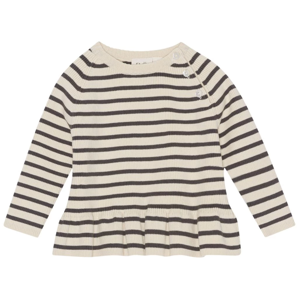 Fall in love with this sweater and your new style!. Cream Flye jumper by Flöss. The jumper has a ribbed design. It has a button closure at the shoulder and a ruffle at the hem.