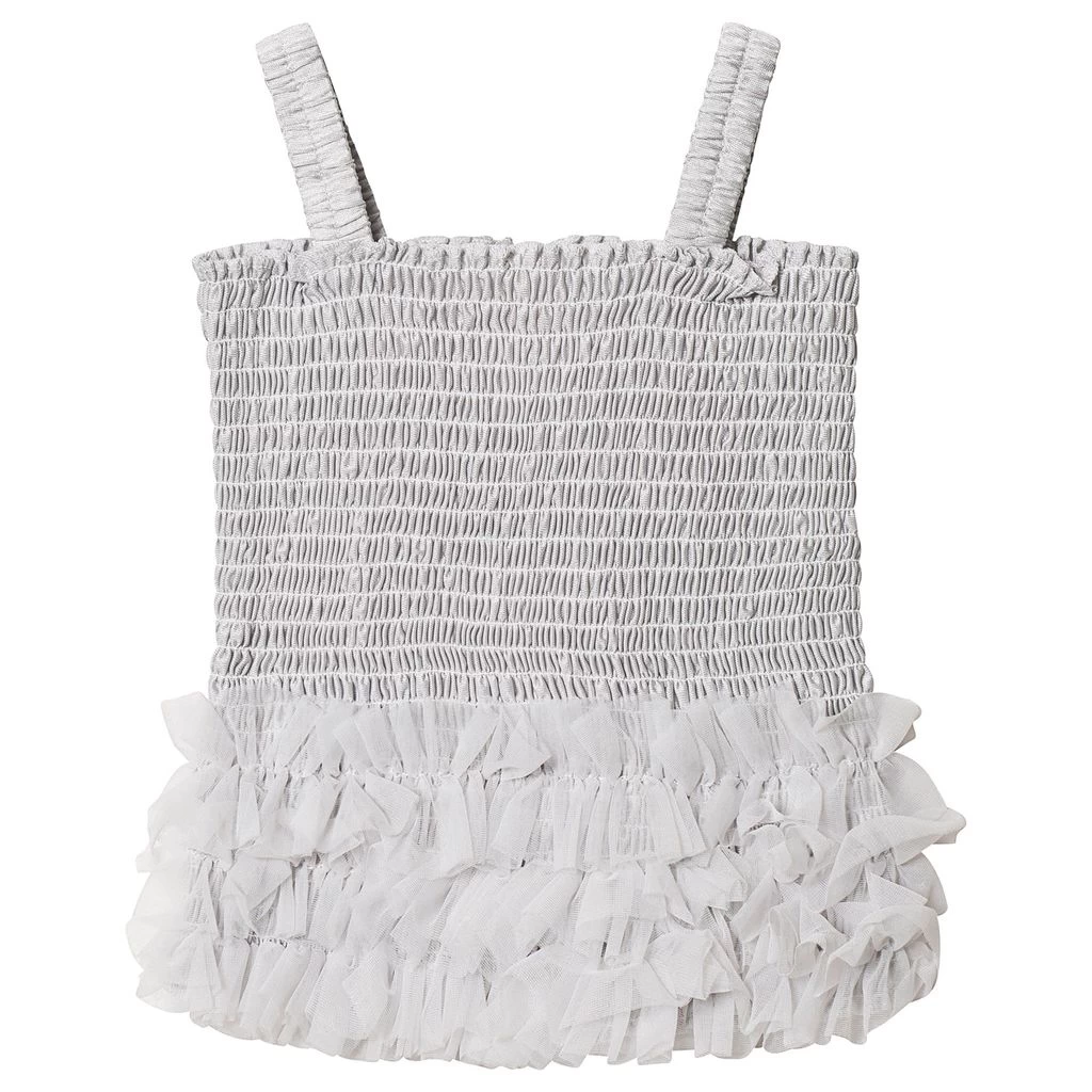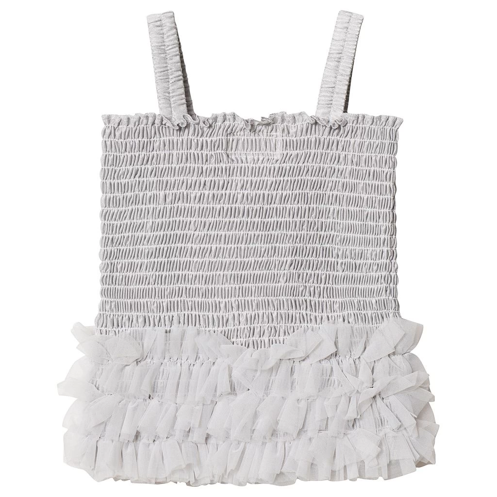 This pretty silver-toned top from DOLLY by Le Petit Tom will make a lovely addition to their clothing line-up. Expertly crafted in stretchy chiffon, it features slim straps, all-over ruching and statement frill detailing. Style it with a denim skirt, leggings and colourful sneakers for a quirky party look.