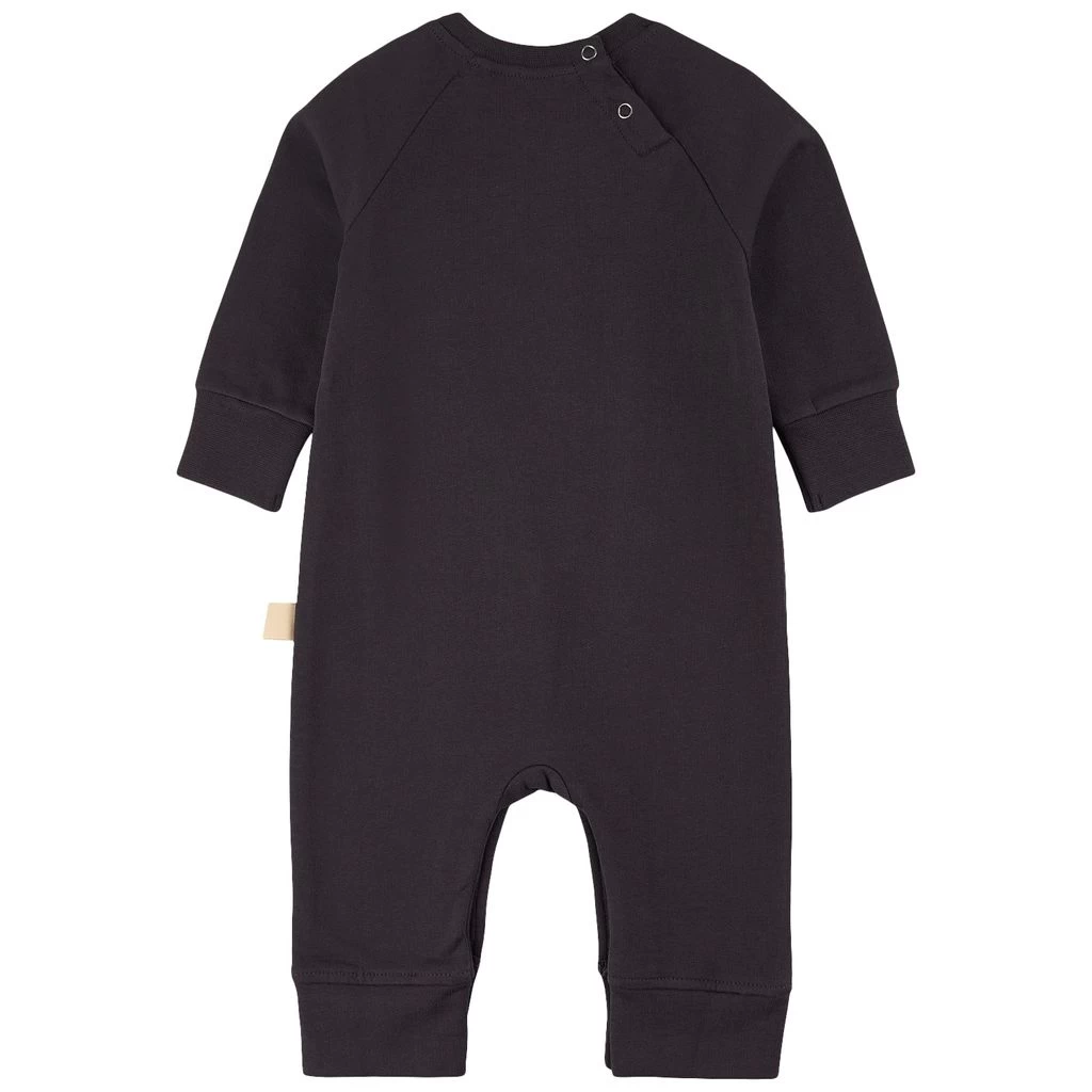 Organic cotton keeps you cozy and comfortable all day. Black Fritz one-piece by I Dig Denim. The one-piece has ribbed cuffs. It has snap buttons at the shoulder and between the legs.