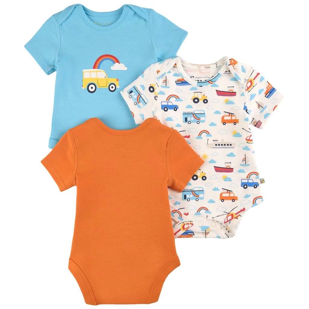 Stock up on baby basics. Red Super Special GOTS baby bodies by Frugi. The baby bodies have an envelope folded neckline. They have snap buttons between the legs.