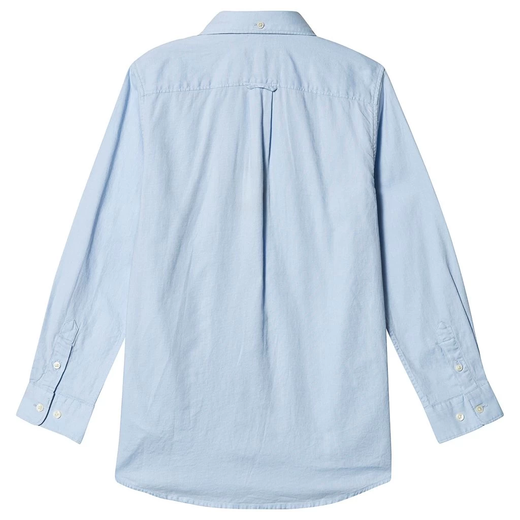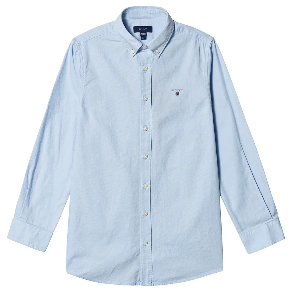 Blue, striped Logo Oxford shirt by GANT. The shirt has a regular fit. It has a button detail on the collar, a logo detail on the front and a button closure on the front.